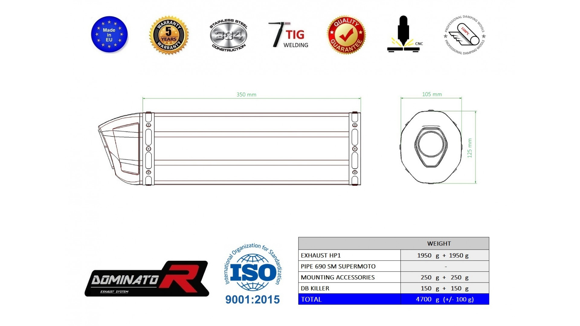 DOMINATOR kipufogó HP1 kompatibilitás: KTM 950 SM SuperMoto R 2006 KTM 950 SM SuperMoto R 2007 KTM 950 SM SuperMoto R 2008
