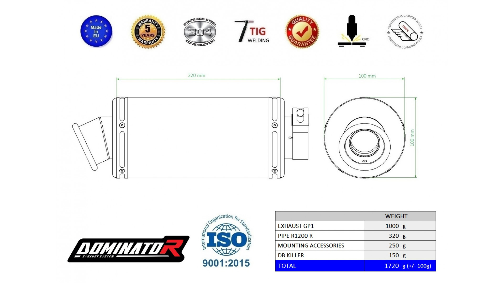 DOMINATOR kipufogó GP1 BLACK kompatibilitás: BMW R 1200 R 2010 BMW R 1200 R 2011 BMW R 1200 R 2012 BMW R 1200 R 2013 BMW R 1200 R 2014