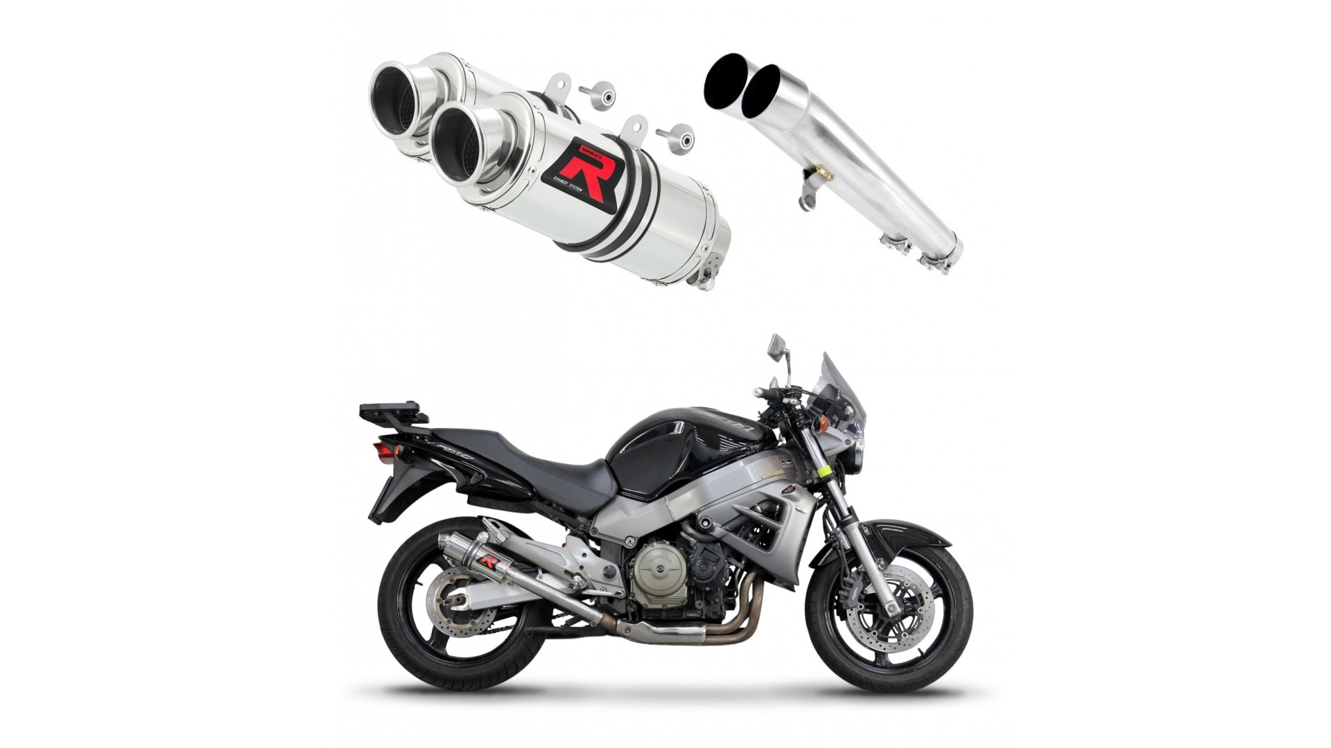 Csomag tartalma: Két Slip-on kipufogó, két összekötő cső, rögzítő alkatrészek.