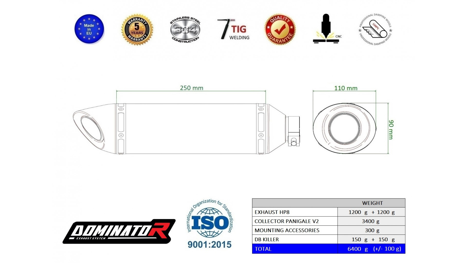 A Dominator kipufogó megváltoztatja motorkerékpár természetét, egyedi hangzást adva neki. A kipufogórendszer növeli a motor teljesítményét és nyomatékát, miközben könnyebb súllyal rendelkezik. A Dominator kipufogó garantálja az alacsony mélyhangzást.