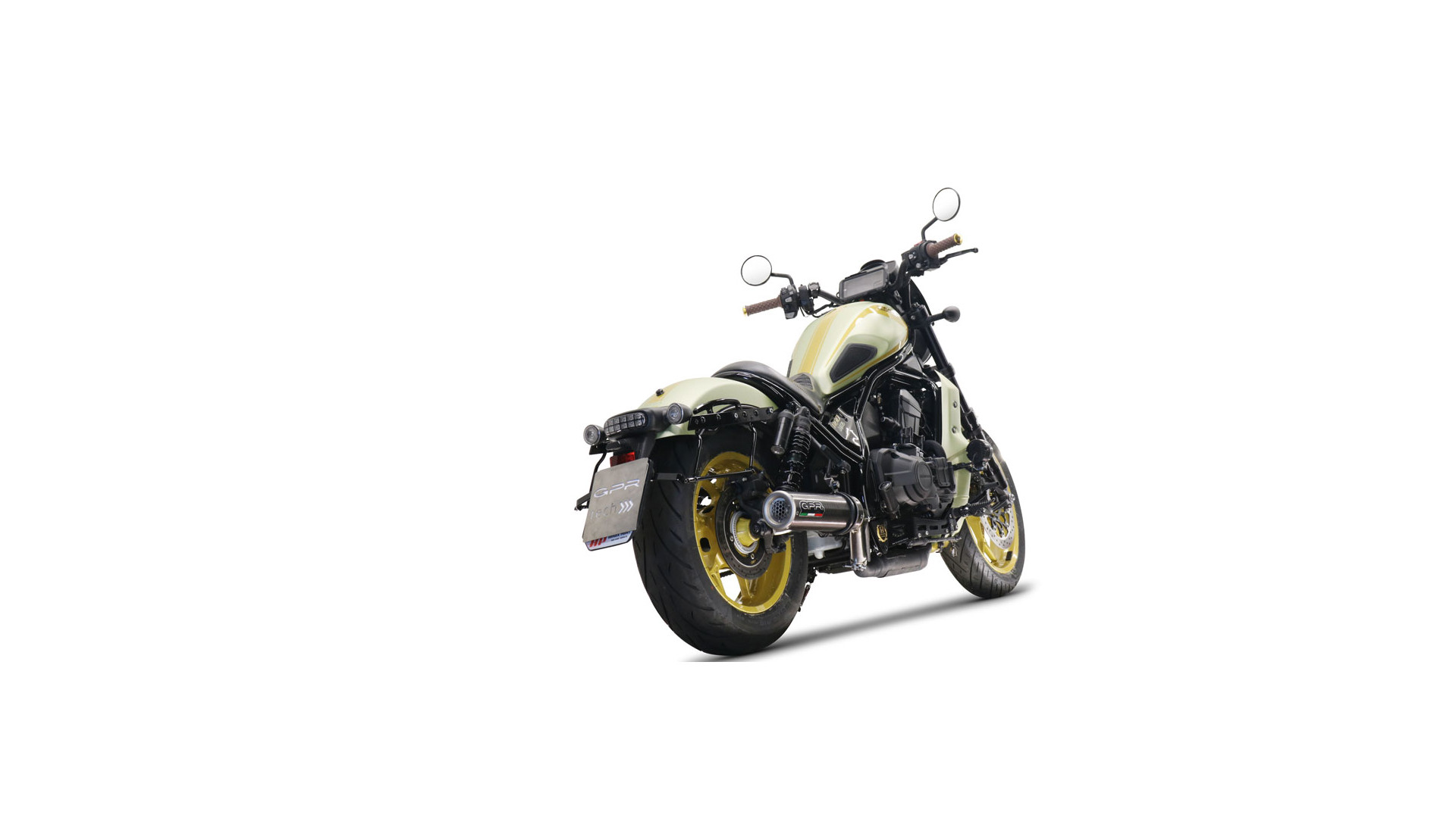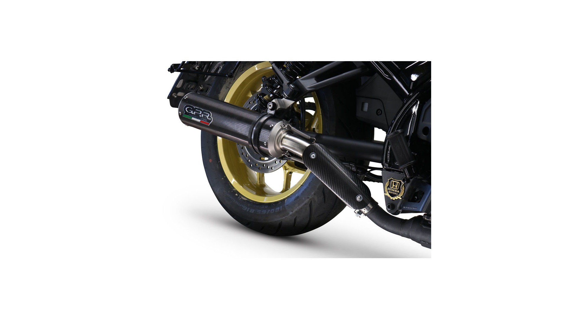 GPR kipufogó kompatibilis a Honda Cmx 1100 Rebel 2021-2024-hez, M3 Poppy, homologizált jogszabályoknak megfelelő slip-on kipufogó, eltávolítható db killerrel és link csővel.