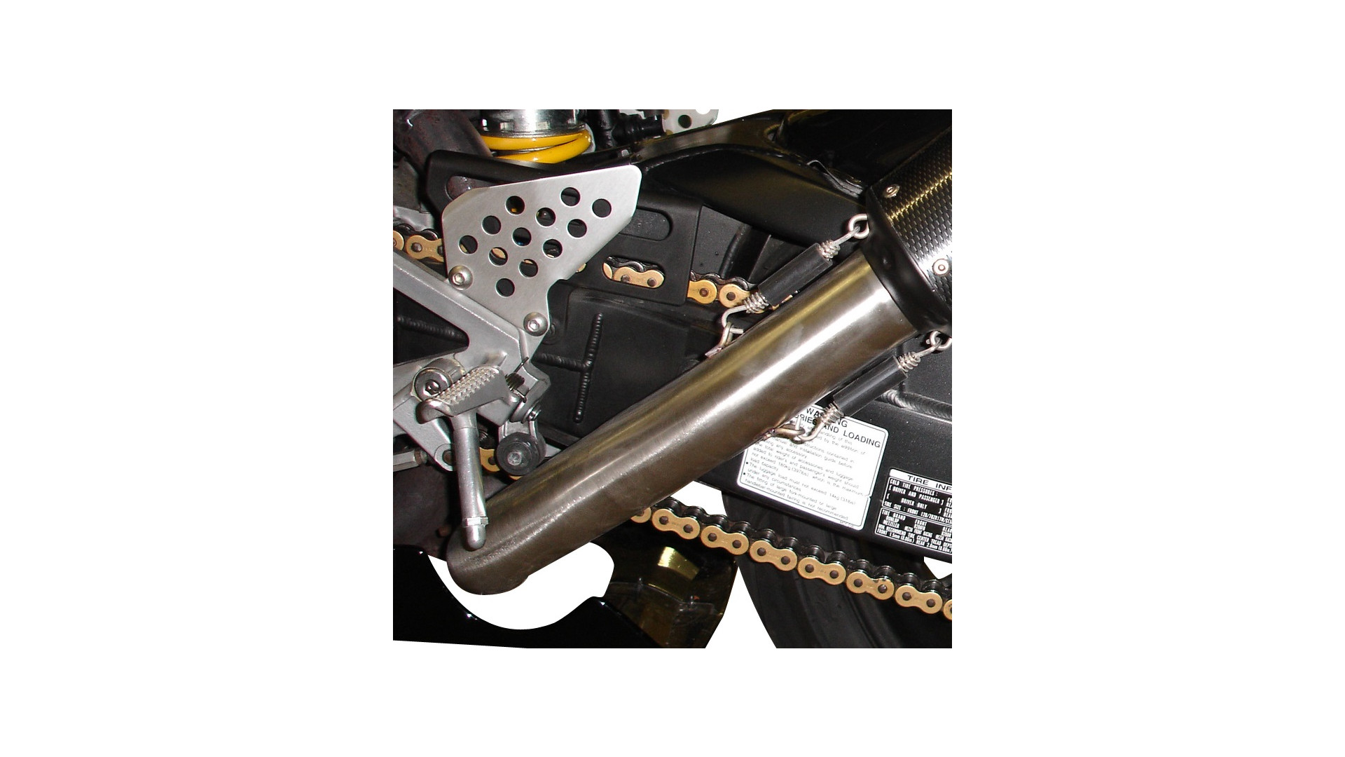 A kipufogónak eltávolítható db killer (zajkorlátozó) van a versenyzéshez. A DB Killer eltávolítása TÖRVÉNYTELEN, és a vásárló vállalja a felelősséget, ha a motorbiciklit kizárólag a pályákon használja, táskák, villogók, rendszámtartó vagy egyéb alkatrészek nélkül, amelyek ütközhetnek a gáz más szögű áramlásával a versenyzési verzióvá történő átalakítás során. Az úton történő visszaélés esetén a termékgarancia elvesztésével jár, és bármilyen visszatérítési kérelem elutasításra kerül.