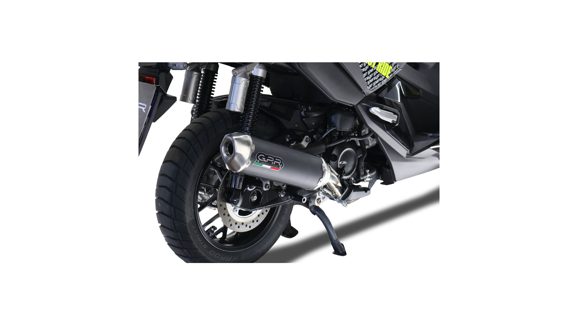 GPR kipufogó kompatibilis a Honda Forza 350 2021-2024-hez, Pentascooter, homologált jogszabályoknak megfelelő slip-on kipufogórendszer, eltávolítható db killerrel és katalizátorral.
