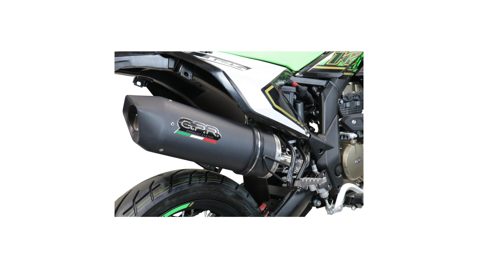 GPR kipufogó kompatibilis a KL MOTOR KXE 125 2022-2023-mal, Furore Evo4 Nero, homologált slip-on kipufogó, eltávolítható db killerrel, kötőcsővel és katalizátorral.