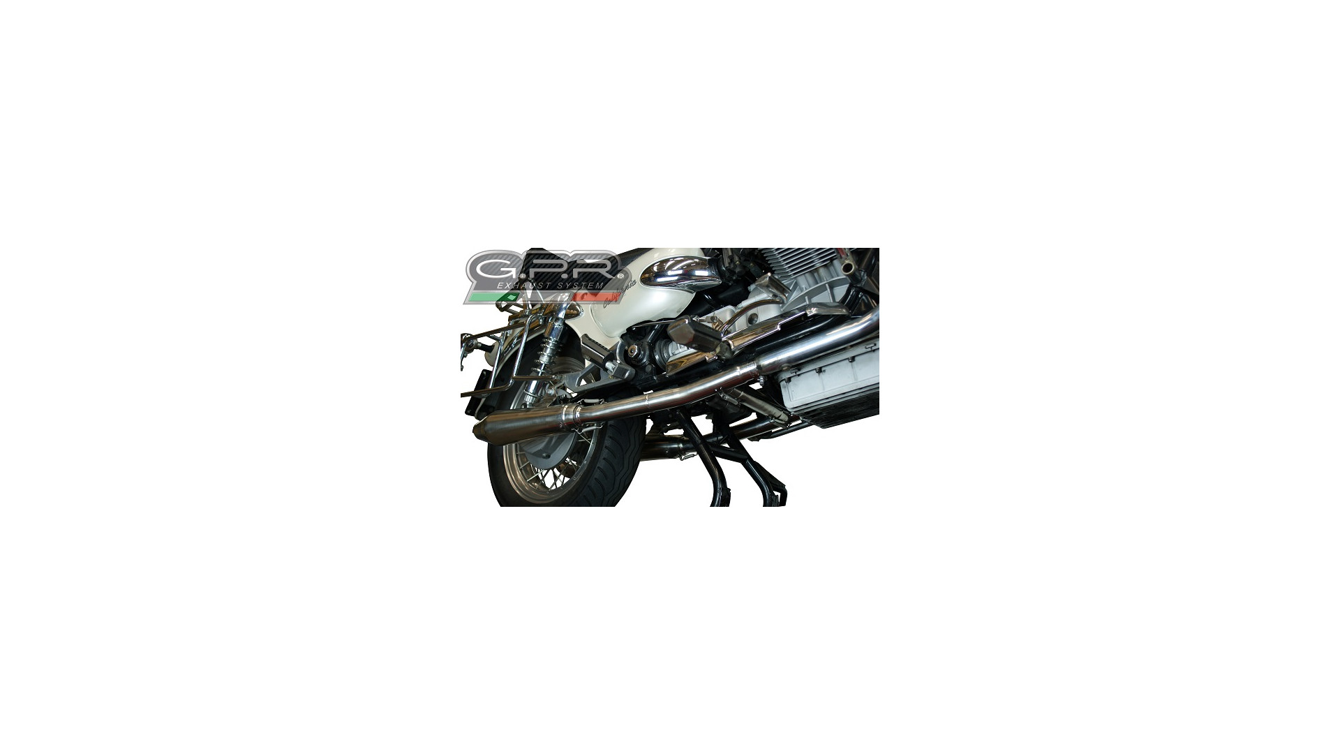 GPR kipufogó kompatibilis a Moto Guzzi California 1100 Special-Stone-Sport-Ev-Alu 1997-2005 modellekhez, Vintacone, Dupla homologált slip-on kipufogó, amely tartalmazza a levehető db csillapítókat, közbülső csöveket és katalizátorokat.