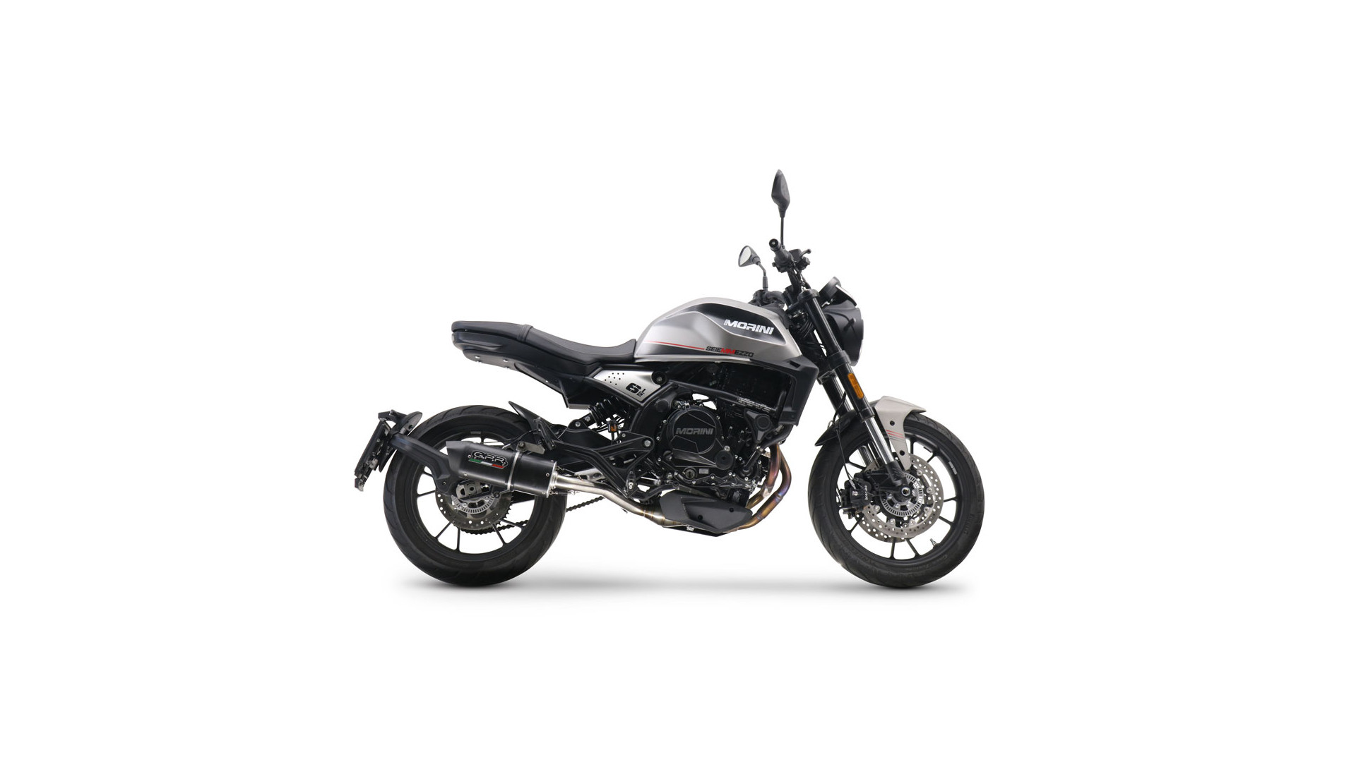 GPR kipufogó kompatibilis a Moto Morini Seiemmezzo Scr 2022-2024, Furore Evo4 Nero modellekhez, homologált jogi közép-teljes rendszerű kipufogó, eltávolítható db killerrel és katalizátorral.