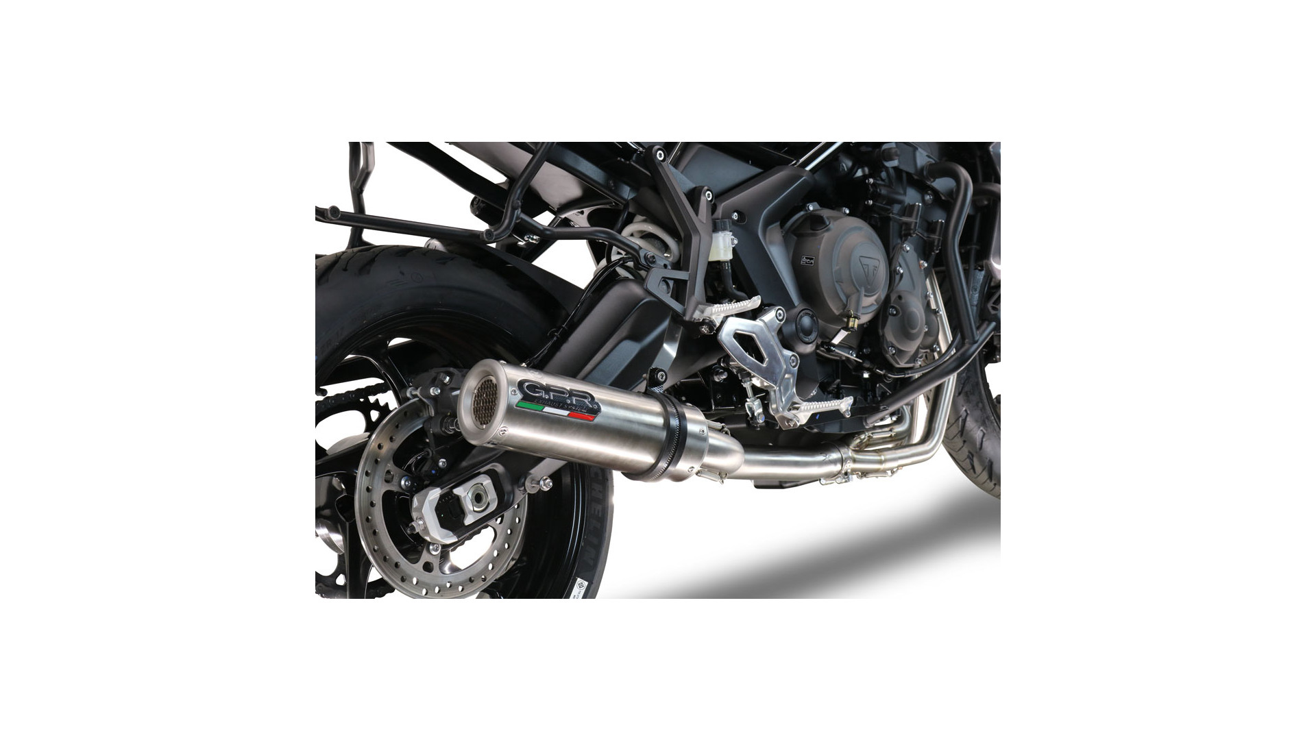 GPR kipufogó kompatibilis a Triumph Tiger Sport 660 2022-2024-hez, M3 Titán Természetes, Homologált törvényes teljes rendszerű kipufogó, eltávolítható db killerrel és katalizátorral.