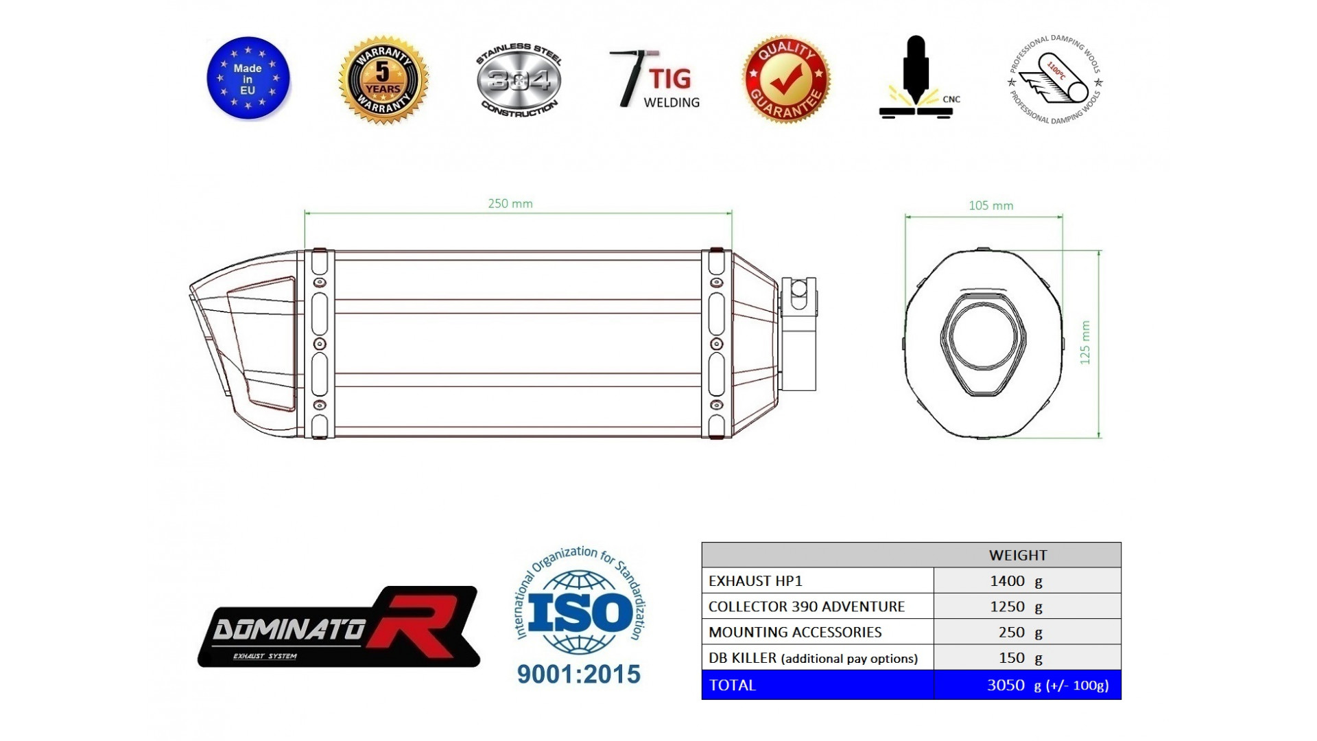 A Dominator kipufogó megváltoztatja motorkerékpár természetét, egyedi hangzást adva neki. A kipufogórendszer növeli a motor teljesítményét és nyomatékát, miközben könnyebb súllyal rendelkezik. A Dominator kipufogó garantálja az alacsony mélyhangzást. Amennyiben túl hangos a kipufogó, csökkentheti a