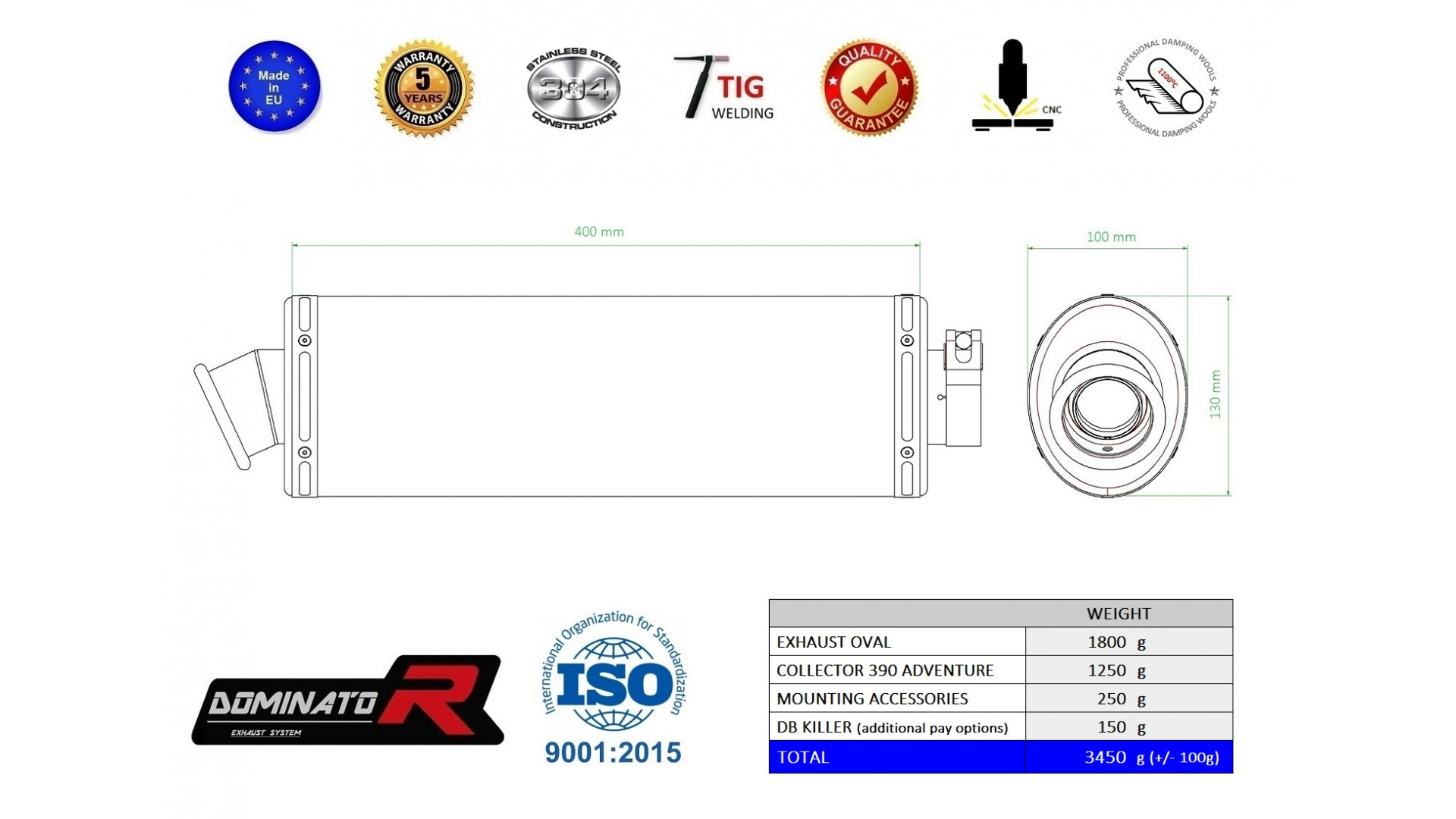 Dominator - KTM 390 Adventure Exhaust FULL SYSTEM Silencer OVAL 2020 - 2022 Kattints a képre a nagyításhoz!