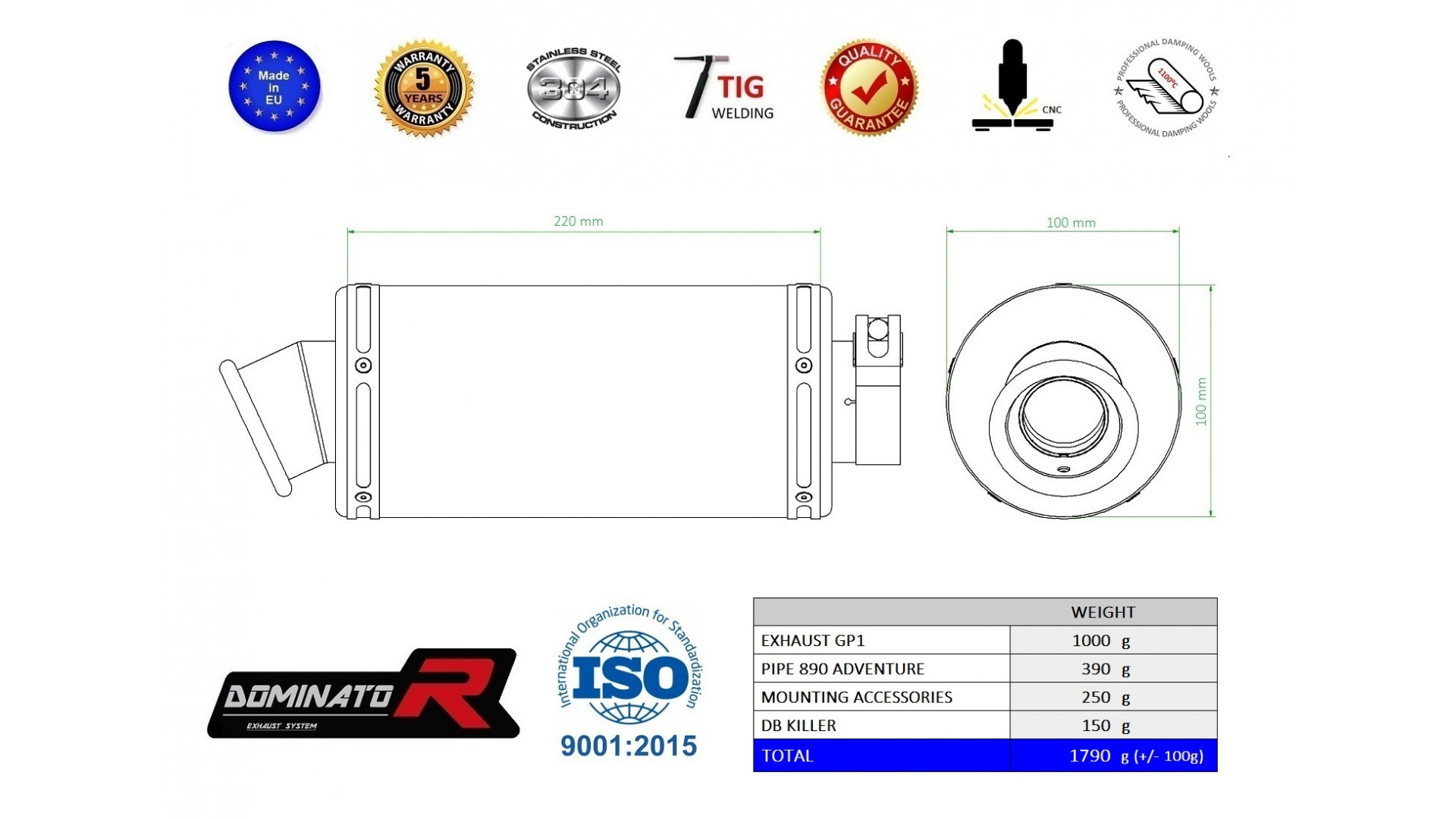DOMINATOR kipufogó GP 1 BLACK kompatibilitás:KTM 790 Adventure 2019KTM 790 Adventure 2020KTM 790 Adventure R 2019KTM 790 Adventure R 2020