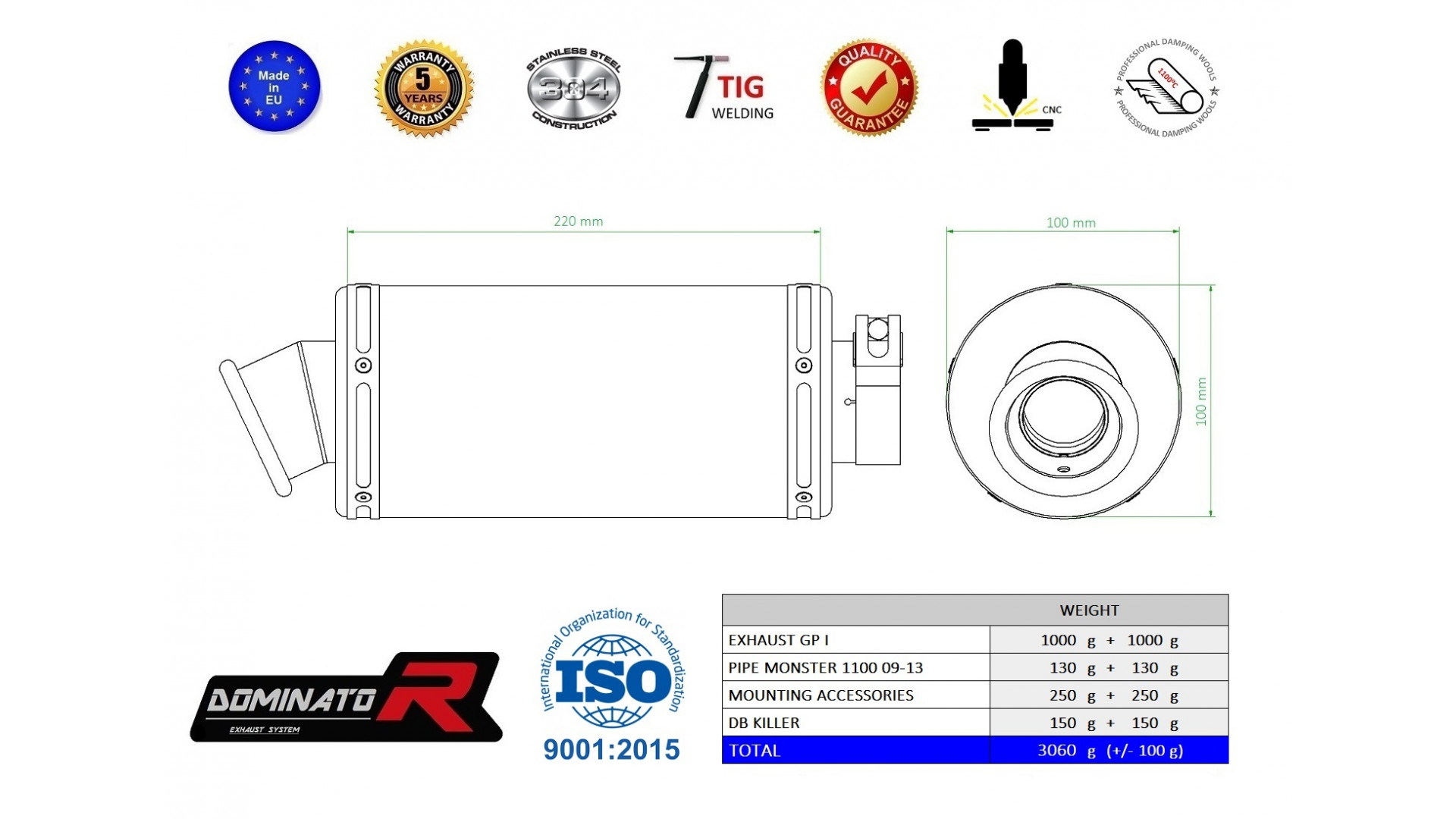 Dominator - MONSTER 1100 kipufogó GP 1 2009 - 2013