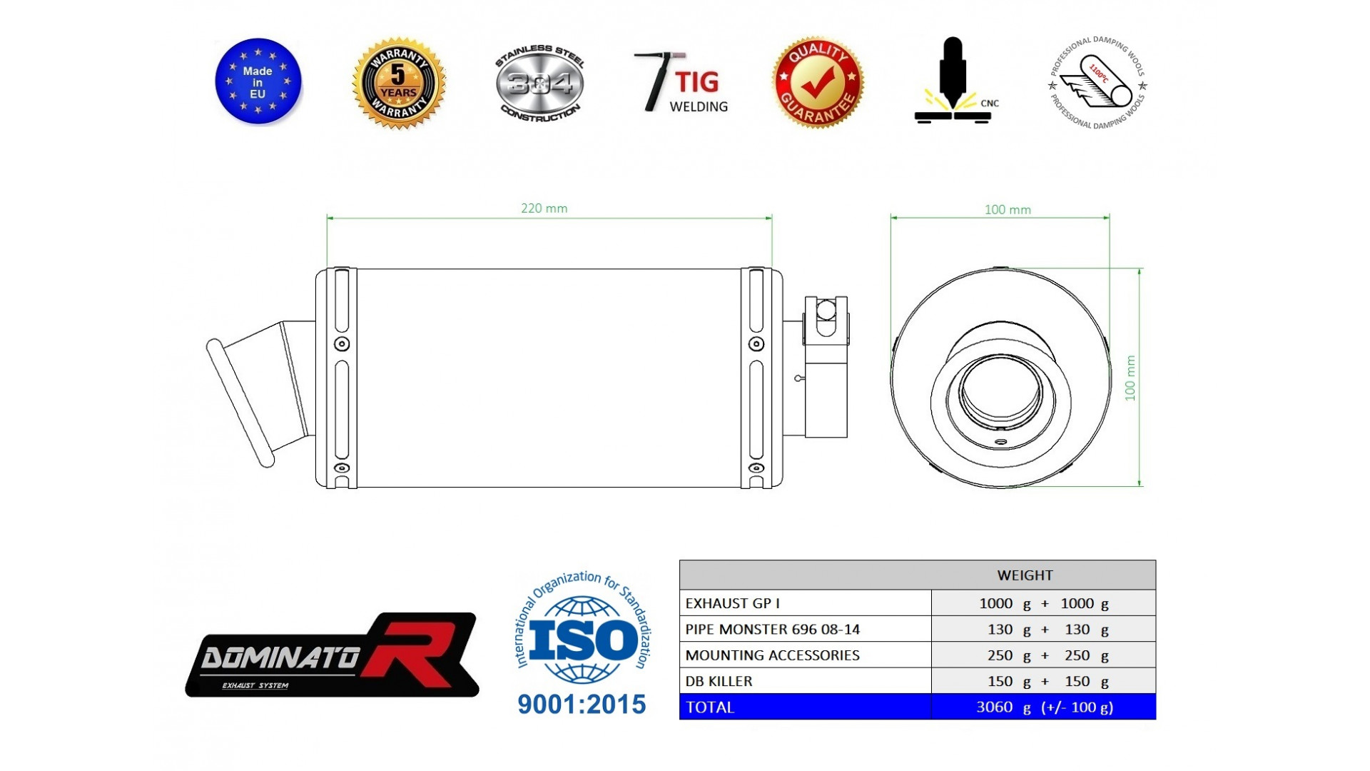 Dominator - MONSTER 696 kipufogó GP 1 2008 - 2014
