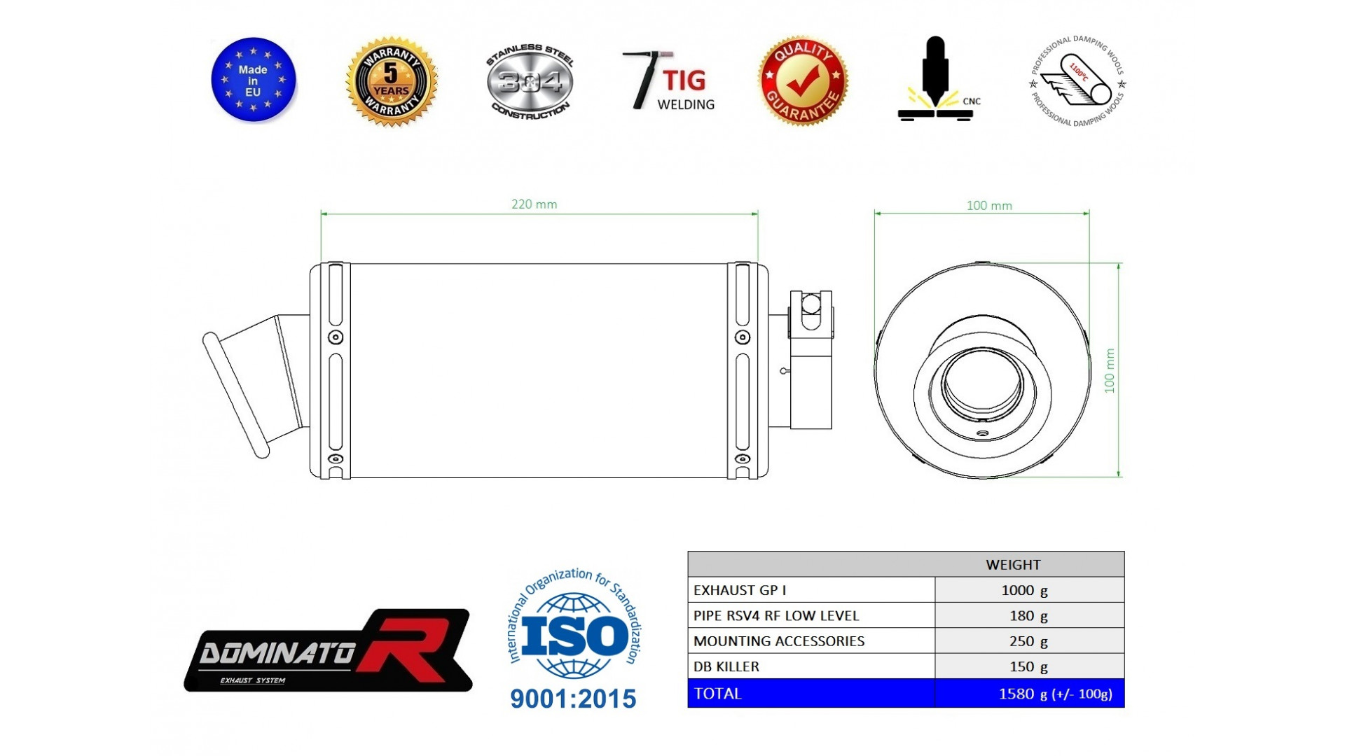 DOMINATOR kipufogó GP 1 kompatibilitás: APRILIA RSV4 RF
