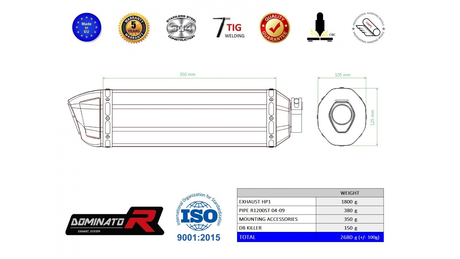 Dominator - R1200ST Homologated kipufogó HP1 2004 - 2009