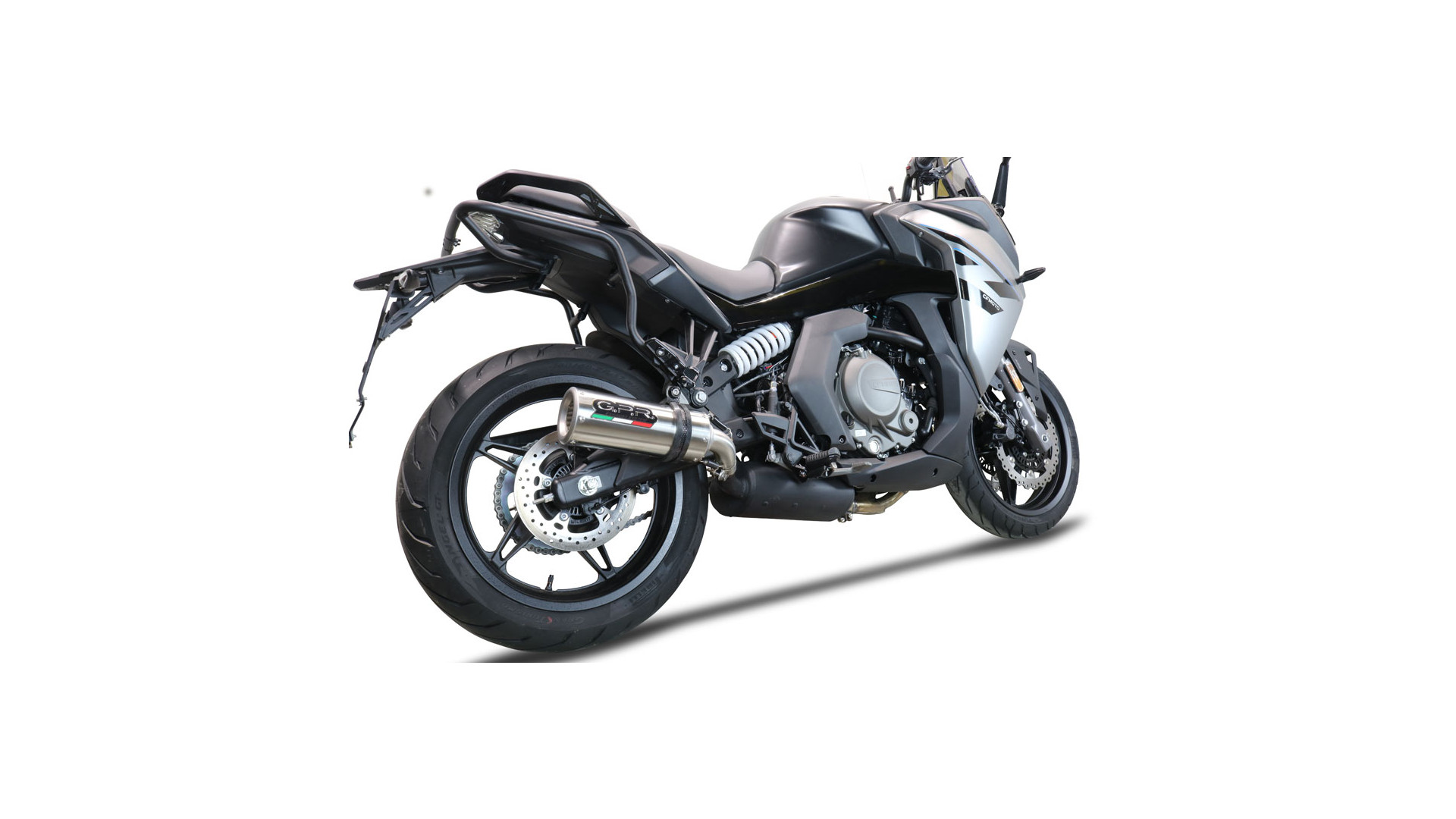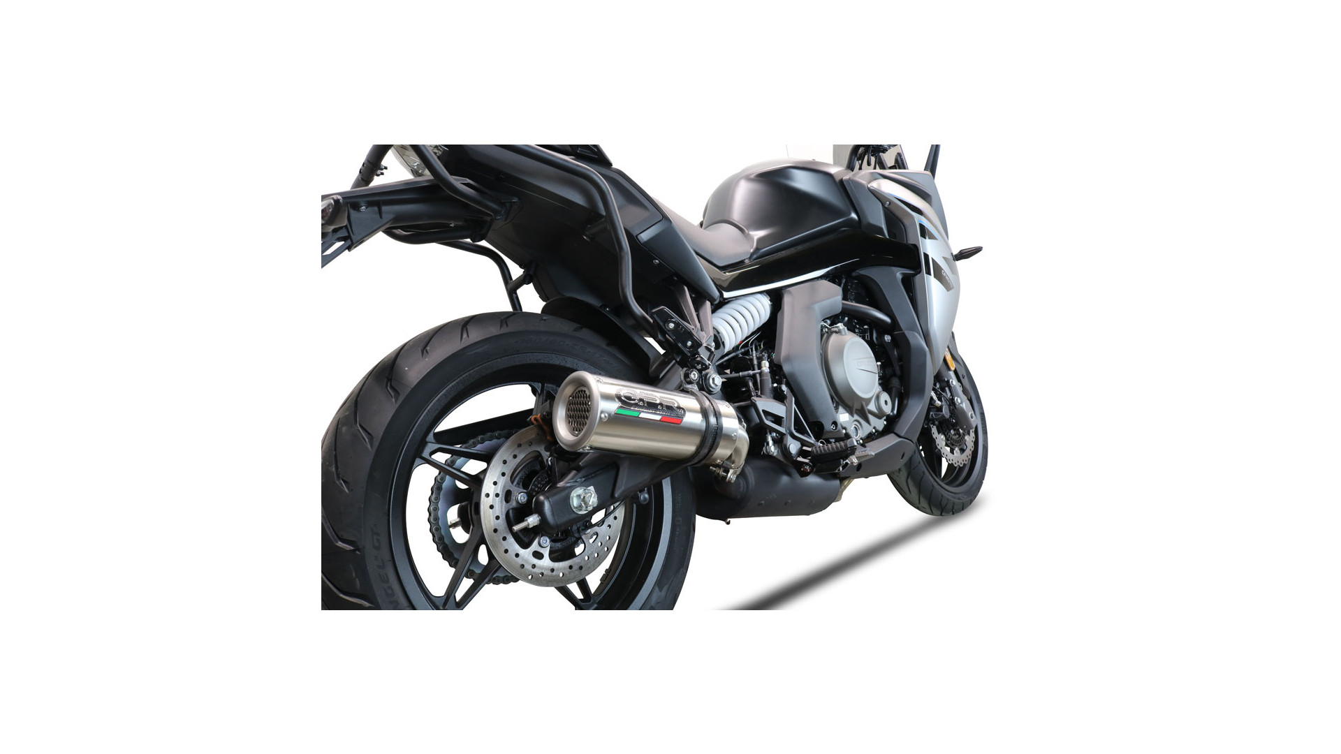 GPR kipufogó kompatibilis a Cf Moto 650 Gt 2025-2026-hoz, M3 Titán Természetes, Homologált jogi slip-on kipufogó, eltávolítható db killerrel és link csővel.