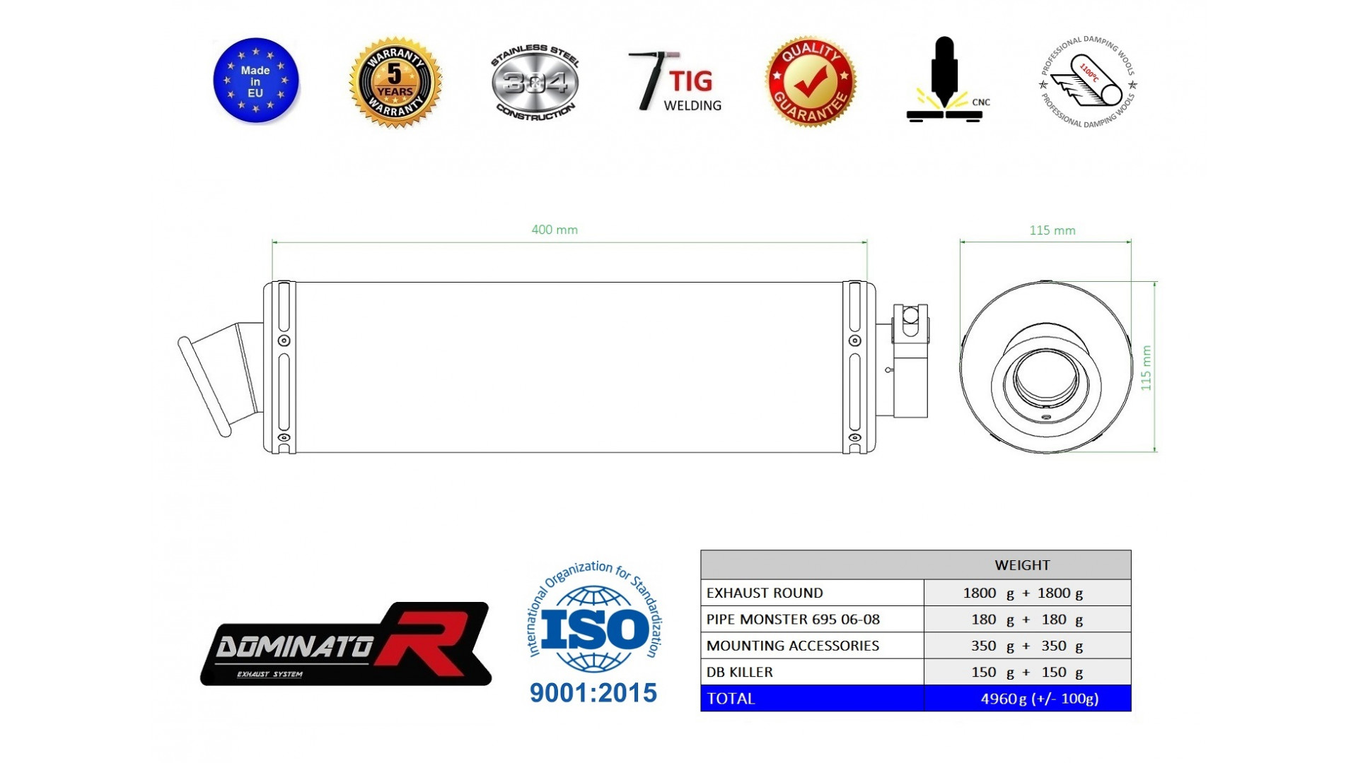 Dominator - MONSTER 695 kipufogó ROUND 2006 - 2008