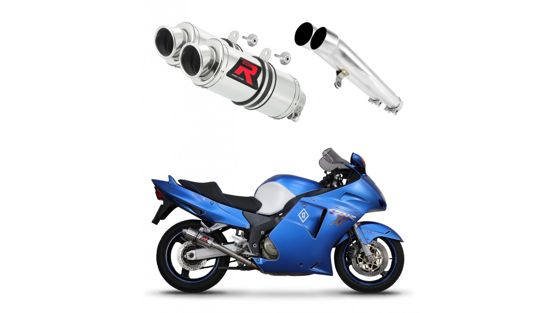 Csomag tartalma: Két Slip-on kipufogó, két összekötő cső, rögzítő alkatrészek.