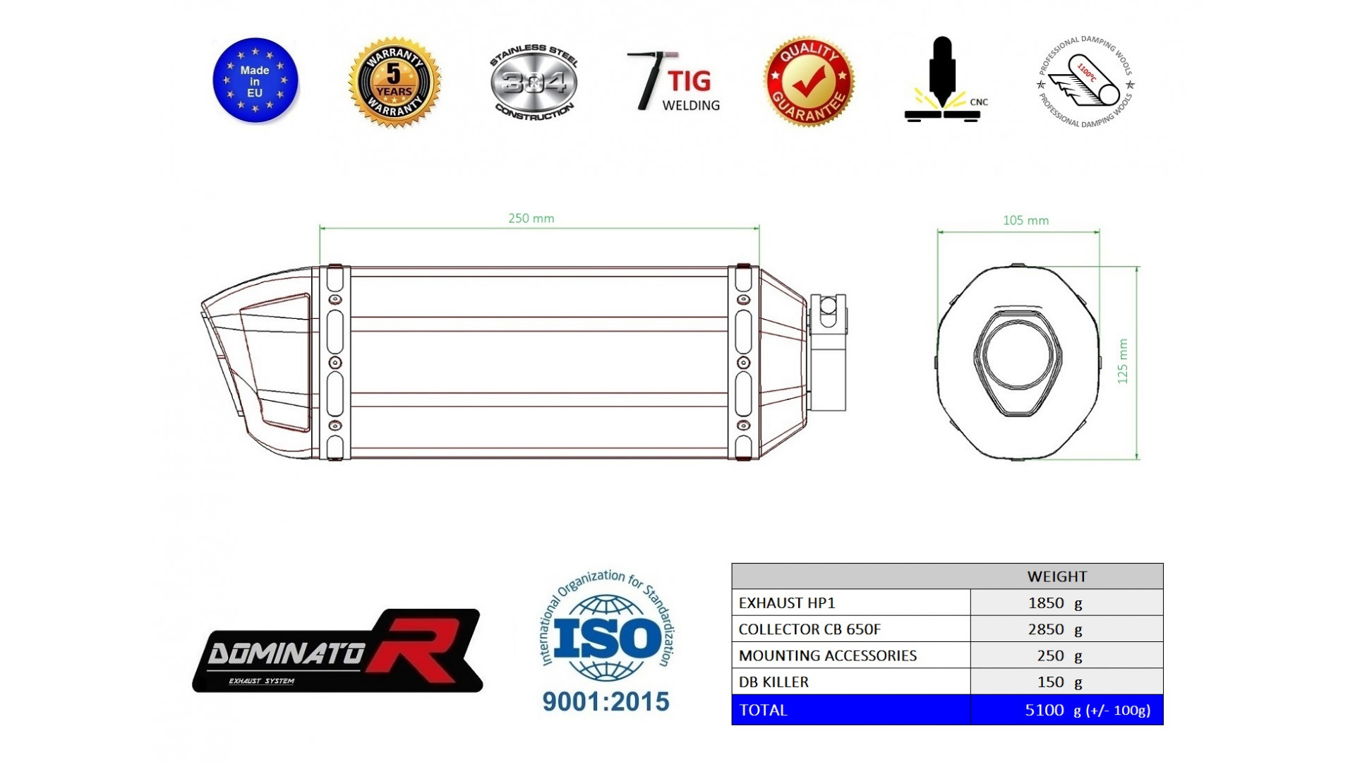 A Dominator kipufogó megváltoztatja motorkerékpár természetét, egyedi hangzást adva neki. A kipufogórendszer növeli a motor teljesítményét és nyomatékát, miközben könnyebb súllyal rendelkezik. A Dominator kipufogó garantálja az alacsony mélyhangzást. Amennyiben túl hangos a kipufogó, csökkentheti a