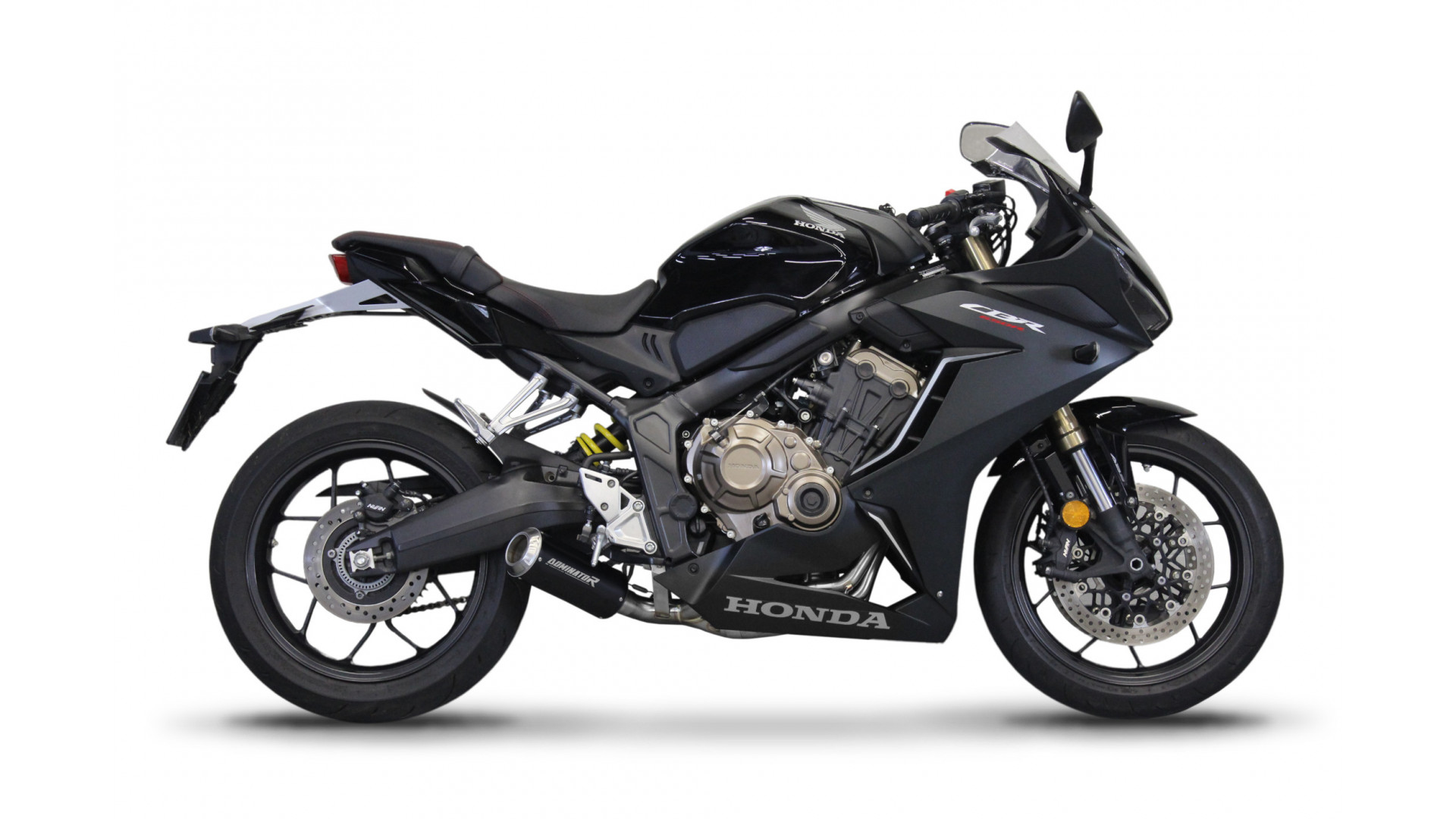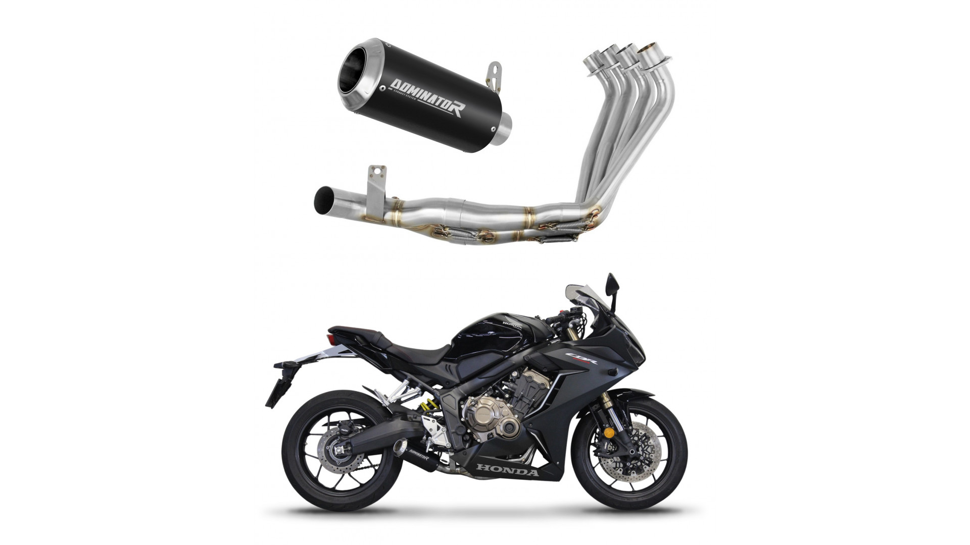 Exhaust System DOMINATOR with GP BLACK kipufogó kompatibilitás: HONDA CBR 650R 2019 HONDA CBR 650R 2020 HONDA CBR 650R 2021 HONDA CBR 650R 2022 HONDA CBR 650R 2023