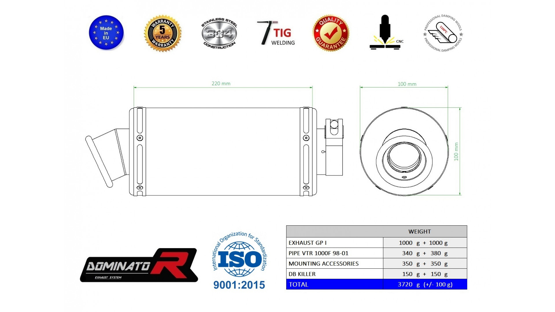 A Dominator kipufogó megváltoztatja motorkerékpár természetét, egyedi hangzást adva neki. A kipufogórendszer növeli a motor teljesítményét és nyomatékát, miközben könnyebb súllyal rendelkezik. A Dominator kipufogó garantálja az alacsony mélyhangzást. Amennyiben túl hangos a kipufogó, csökkentheti a