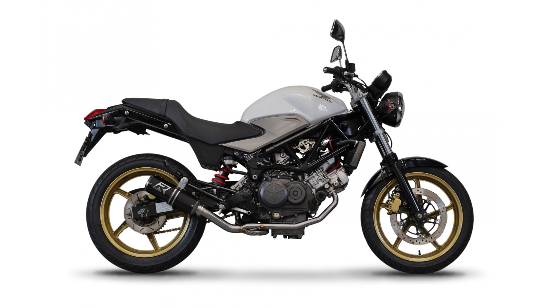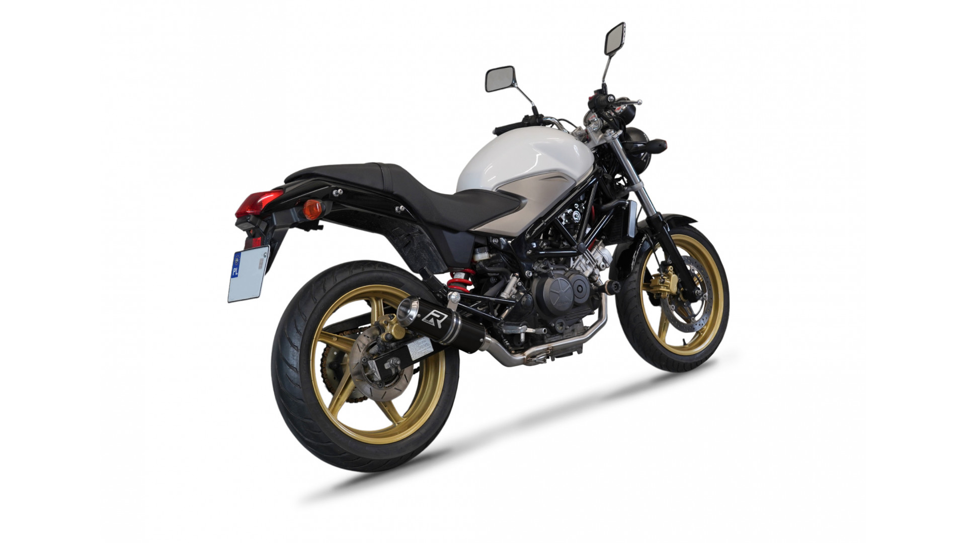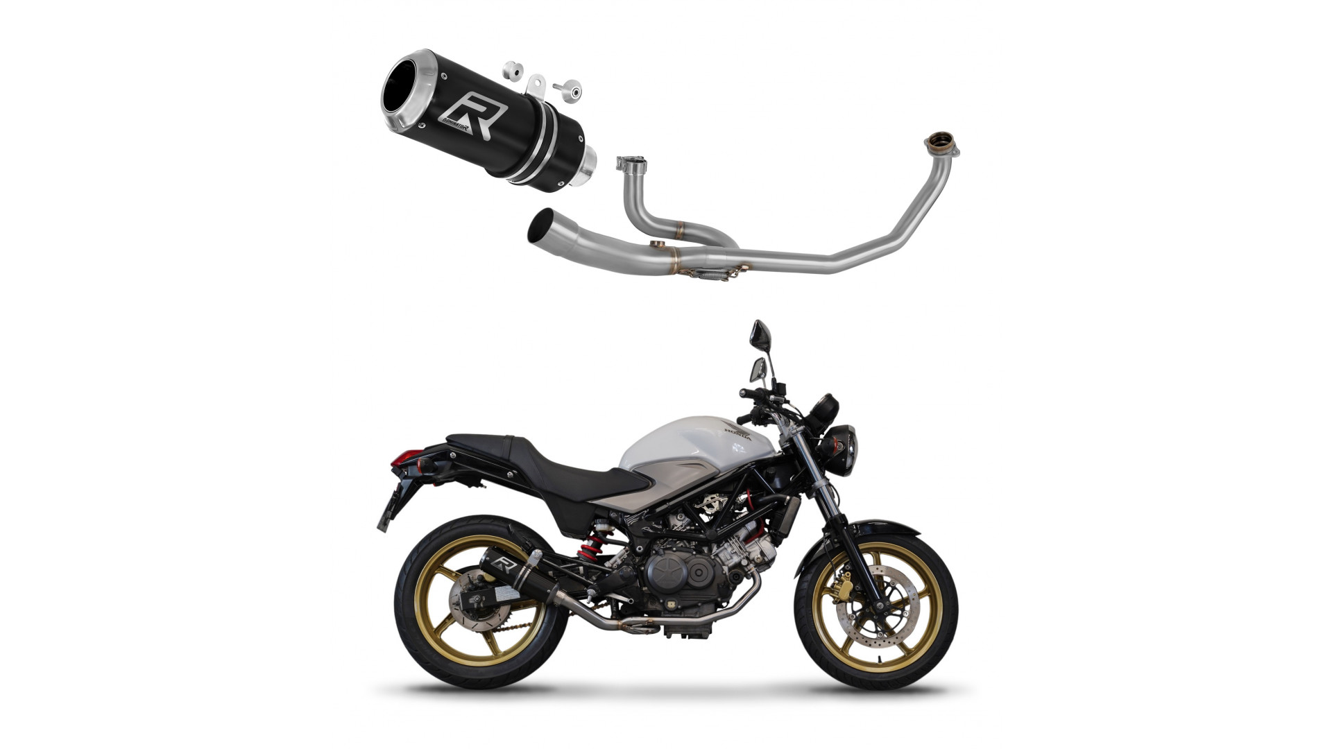 Exhaust System DOMINATOR with GP BLACK kipufogó kompatibilitás: HONDA VTR 250 2009 HONDA VTR 250 2010 HONDA VTR 250 2011 HONDA VTR 250 2012 HONDA VTR 250 2013 HONDA VTR 250 2014 HONDA VTR 250 2015