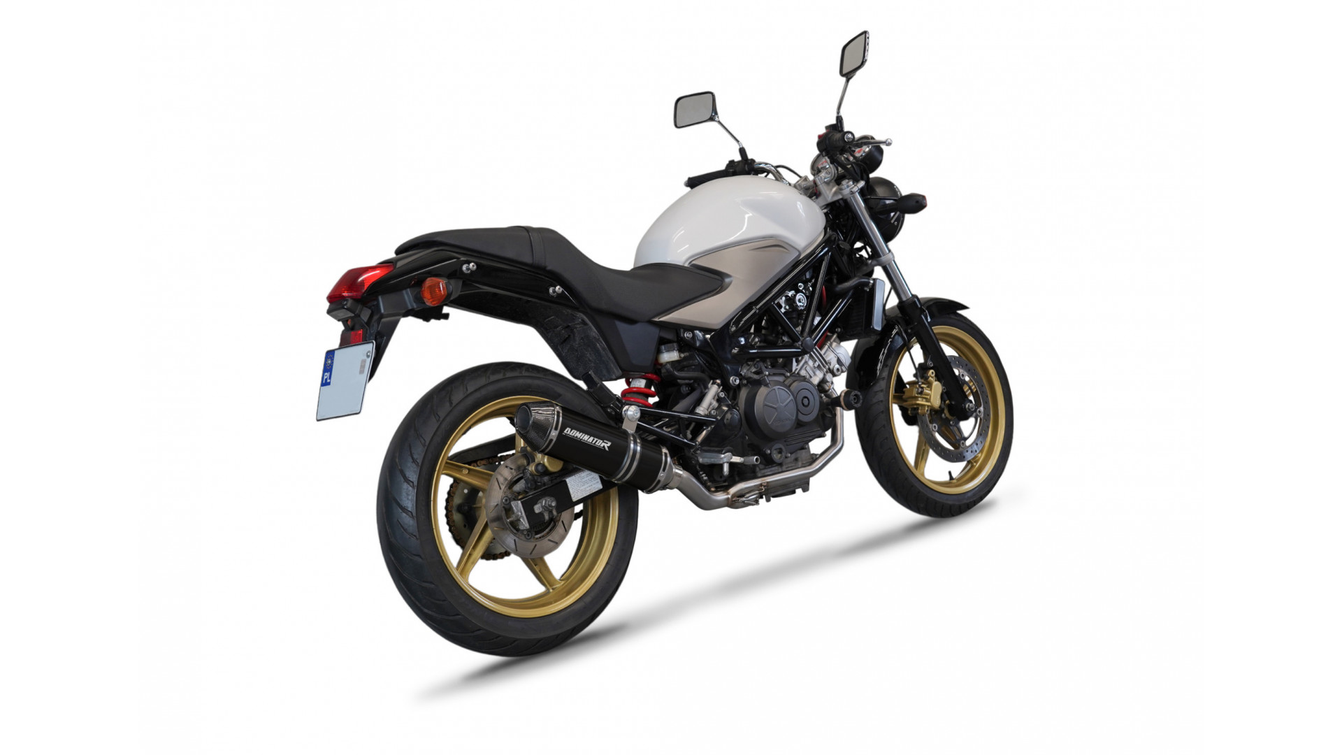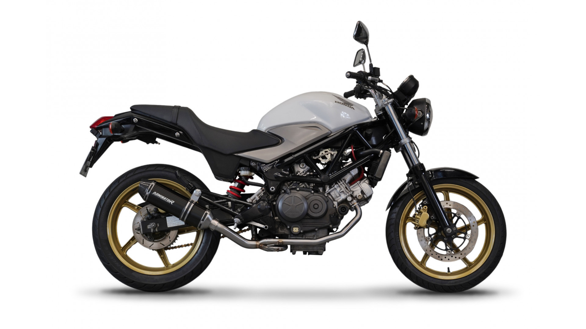 Exhaust System DOMINATOR with HP3 BLACK kipufogó kompatibilitás: HONDA VTR 250 2009 HONDA VTR 250 2010 HONDA VTR 250 2011 HONDA VTR 250 2012 HONDA VTR 250 2013 HONDA VTR 250 2014 HONDA VTR 250 2015
