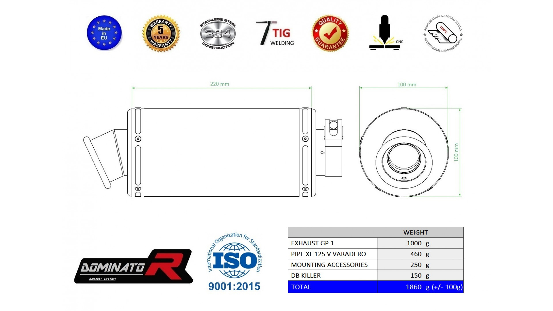 Dominator - XL 125 V VARADERO kipufogó GP 1 2001 - 2006 Kattints a képre a nagyításhoz!