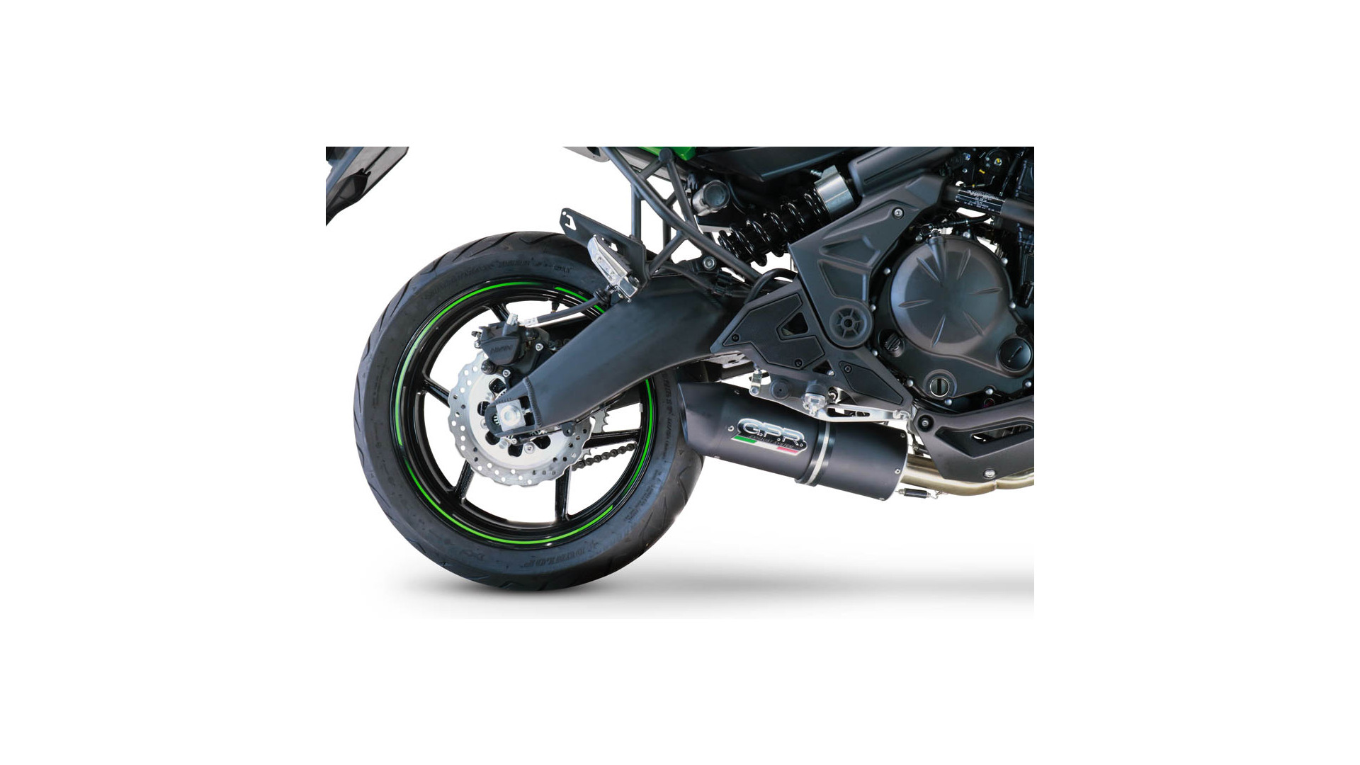 GPR kipufogó kompatibilis a Kawasaki Versys 650 2021-2022 modellel, Furore Nero, Verseny teljes rendszerű kipufogó, eltávolítható db killerrel.