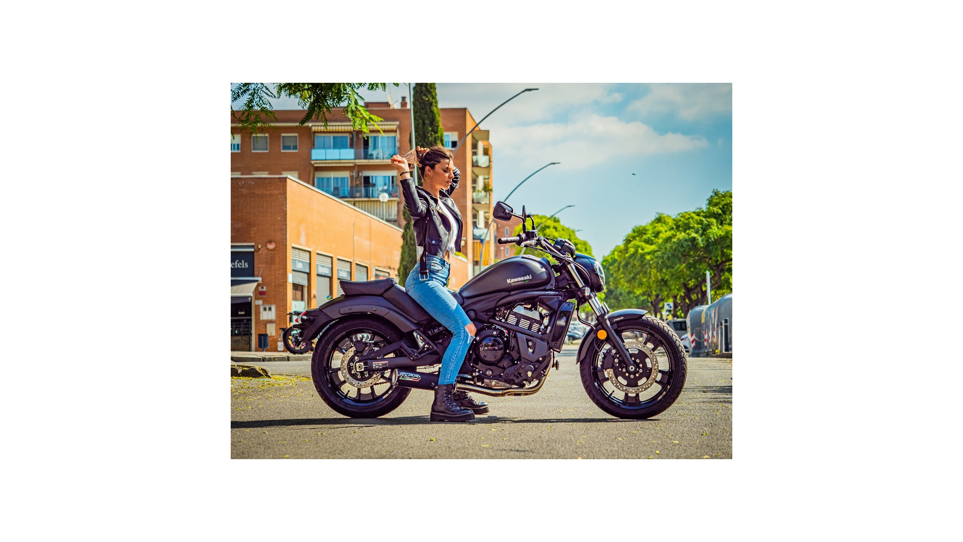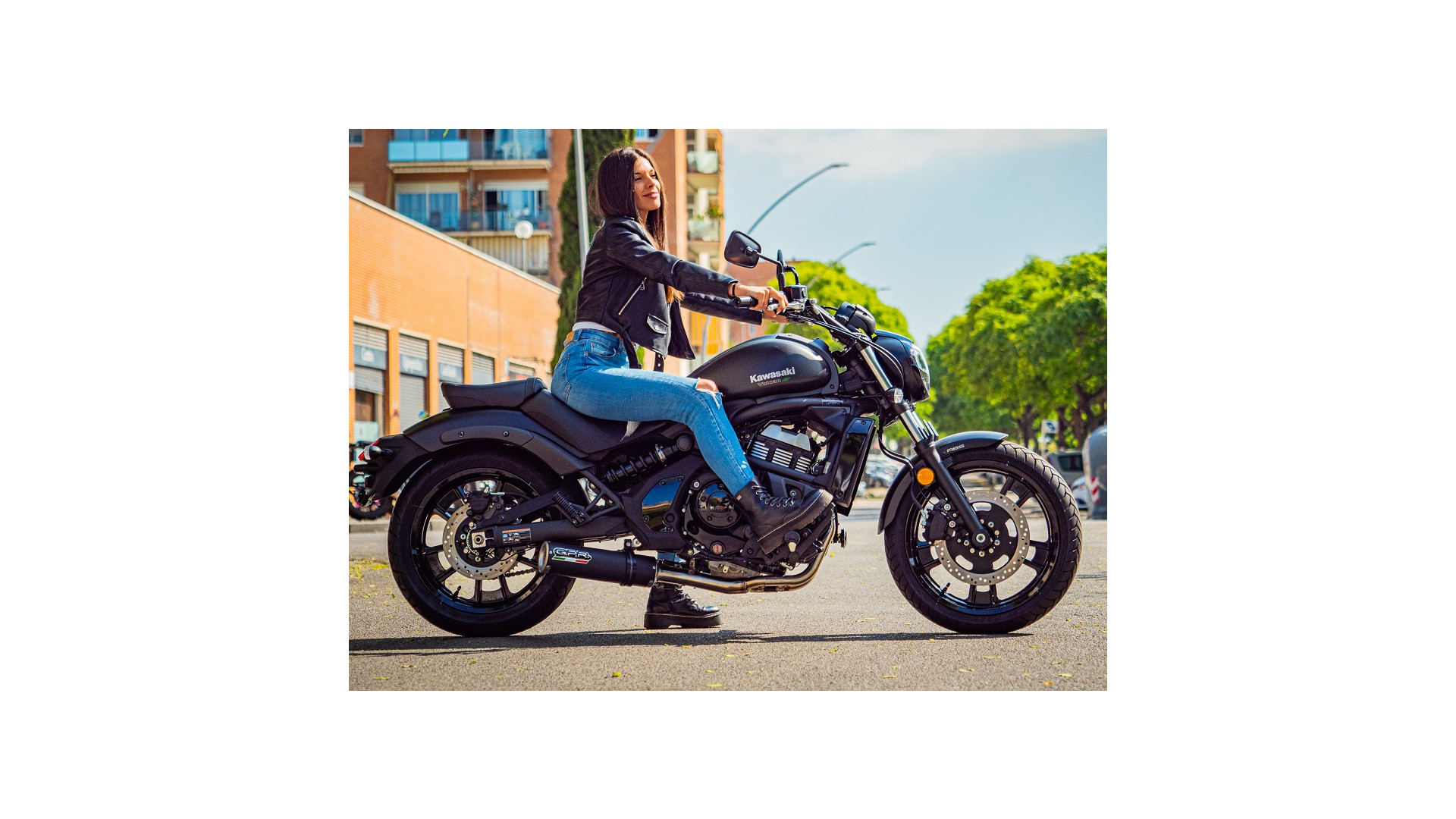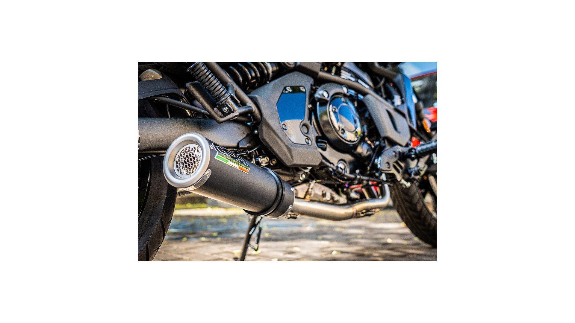 GPR kipufogó kompatibilis a Kawasaki Vulcan 650 S 2021-2023-mal, M3 Fekete Titán, Homologált teljes rendszerű kipufogó, eltávolítható zajcsökkentővel és katalizátorral.