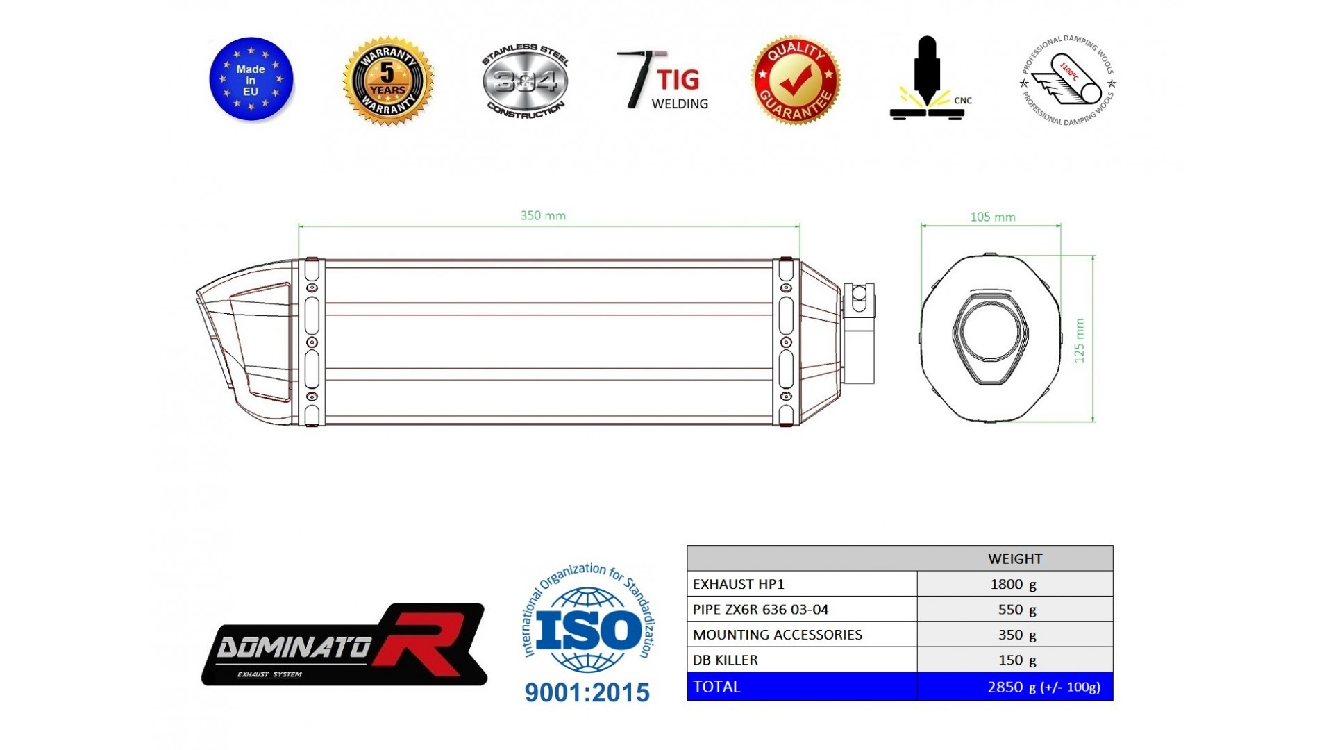 DOMINATOR kipufogó HP1 kompatibilitás: KAWASAKI ZX6R 636 2003 KAWASAKI ZX6R 636 2004