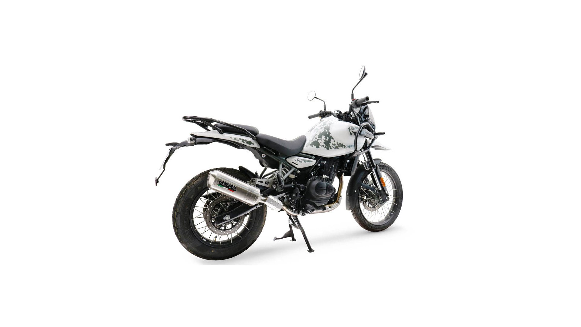 GPR kipufogó kompatibilis a Royal Enfield Himalayan 450 2024-2025-höz, Satinox, Homologizált jogi slip-on kipufogó, eltávolítható db killerrel és link csővel.