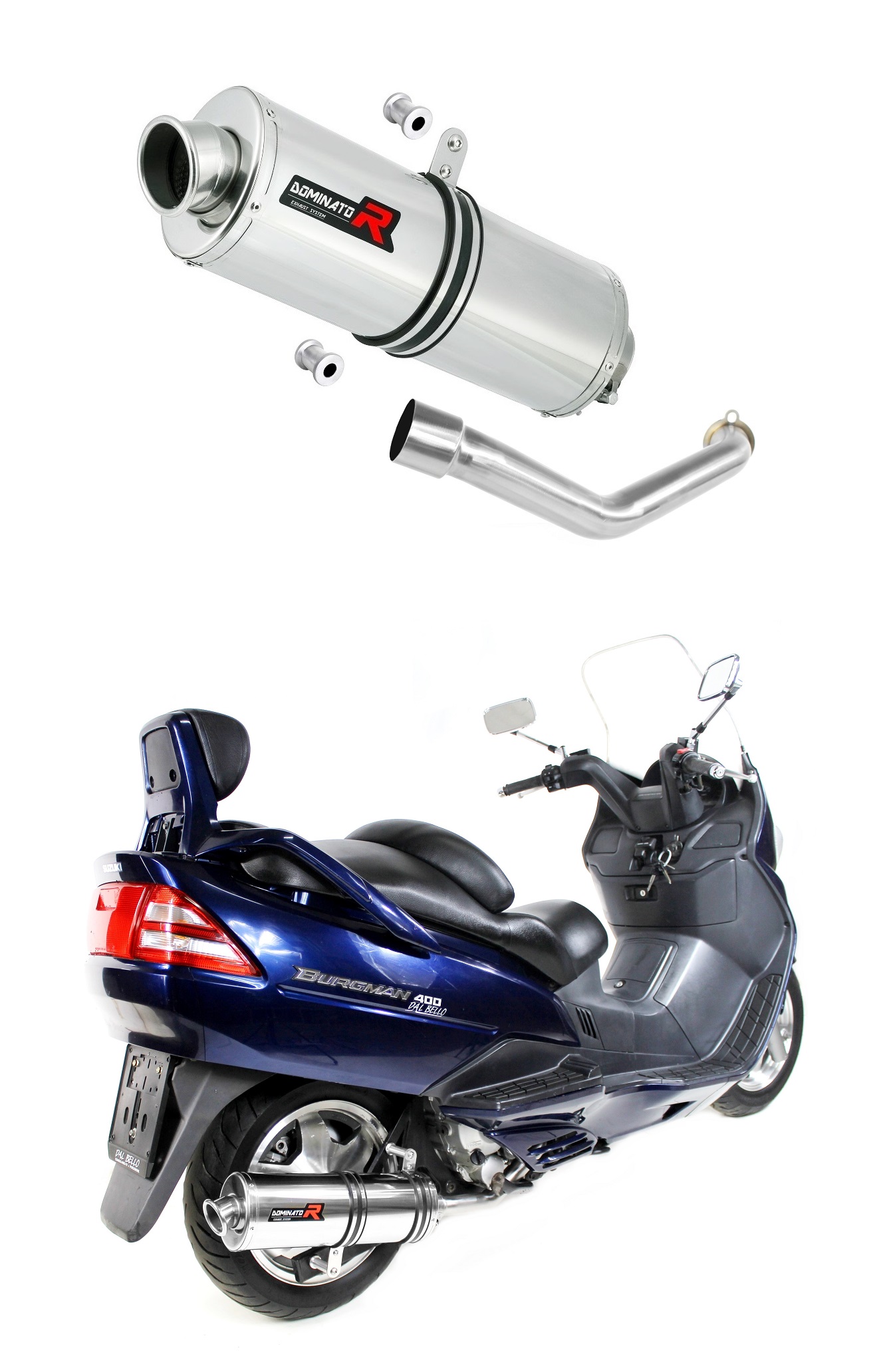 DOMINATOR kipufogó OVAL kompatibilitás: SUZUKI BURGMAN 400 1998 SUZUKI BURGMAN 400 1999 SUZUKI BURGMAN 400 2000 SUZUKI BURGMAN 400 2001 SUZUKI BURGMAN 400 2002