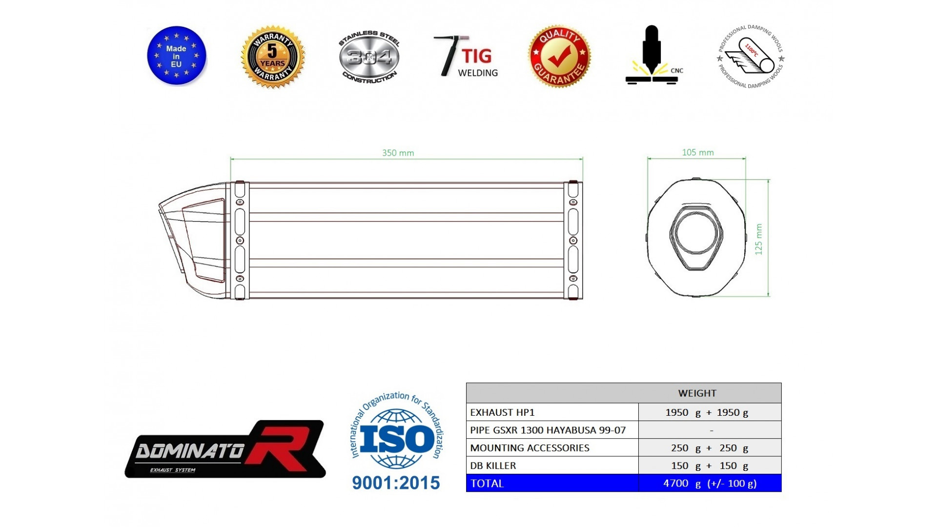 DOMINATOR kipufogó HP1 kompatibilitás: SUZUKI GSX 1300 R HAYABUSA 1999 SUZUKI GSX 1300 R HAYABUSA 2000 SUZUKI GSX 1300 R HAYABUSA 2001 SUZUKI GSX 1300 R HAYABUSA 2002 SUZUKI GSX 1300 R HAYABUSA 2003 SUZUKI GSX 1300 R HAYABUSA 2004 SUZUKI GSX 1300 R HAYABUSA 2005 SUZUKI GSX 1300 R HAYABUSA 2006 SUZUKI GSX 1300 R HAYABUSA 2007