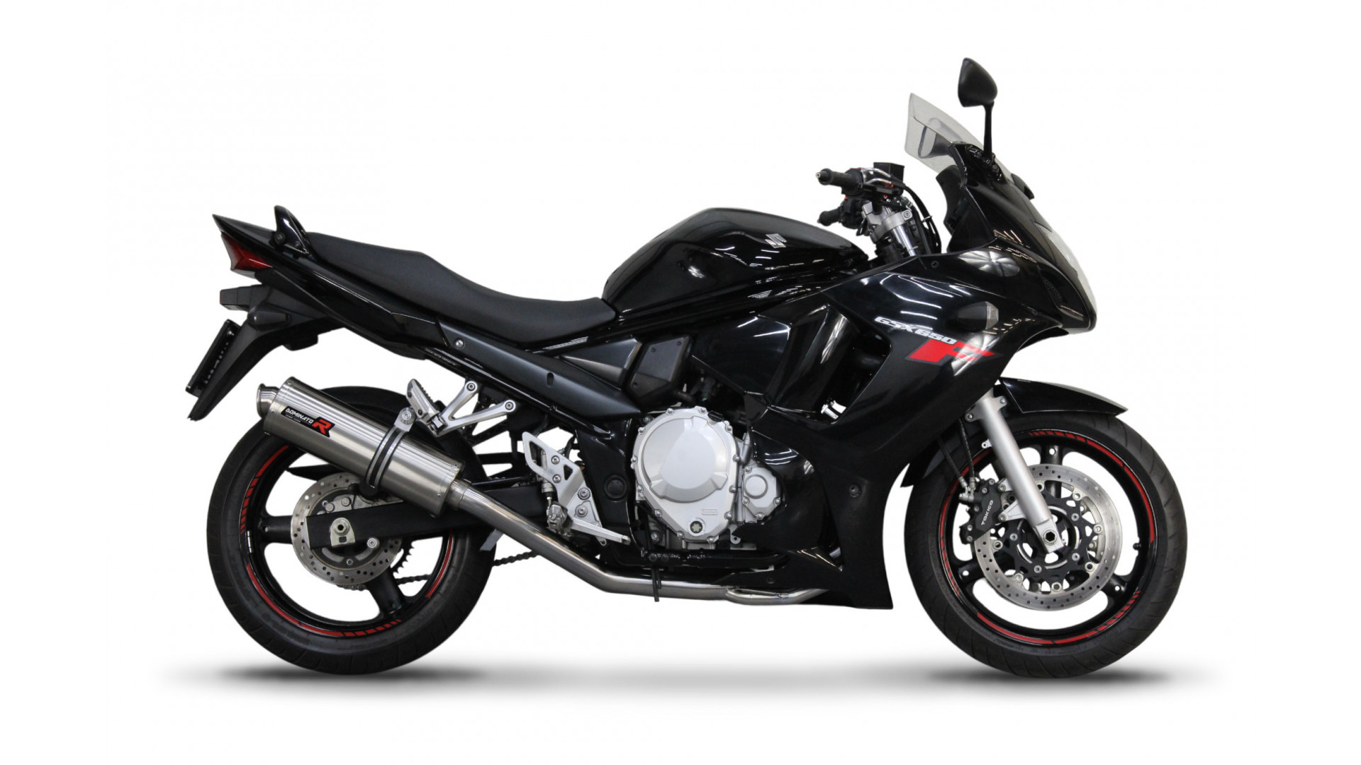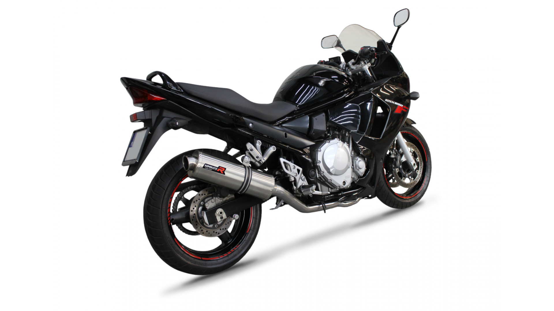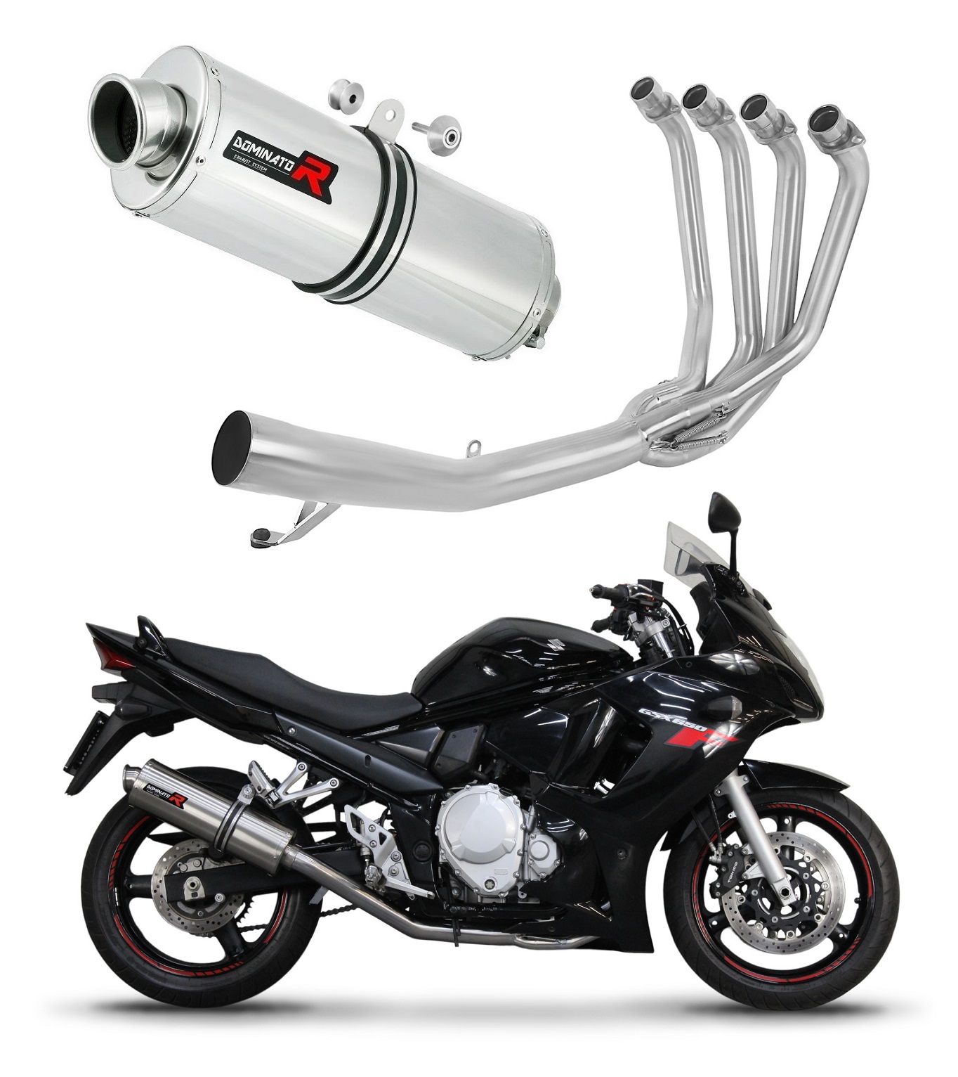 Dominator - Suzuki GSXF 650 2007 - 2016 Teljes kipufogó rendszer, összekötőcső + kipufogó OV + dB killer Kattints a képre a nagyításhoz!