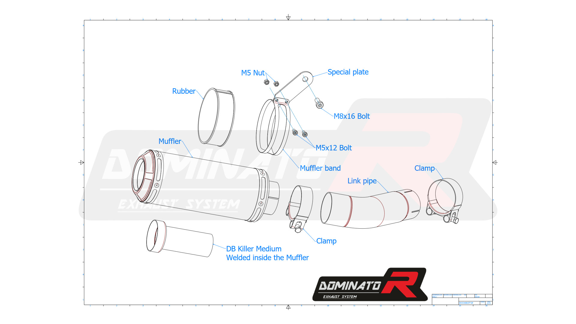 Rögzítő alkatrészek - Gyors összeszerelés In the version with a black Hangtompító, the Dominator logo is marked with an white engraving dB killer Medium - non-removable (welded) ECE Type approval - Street legal Approval Certificate