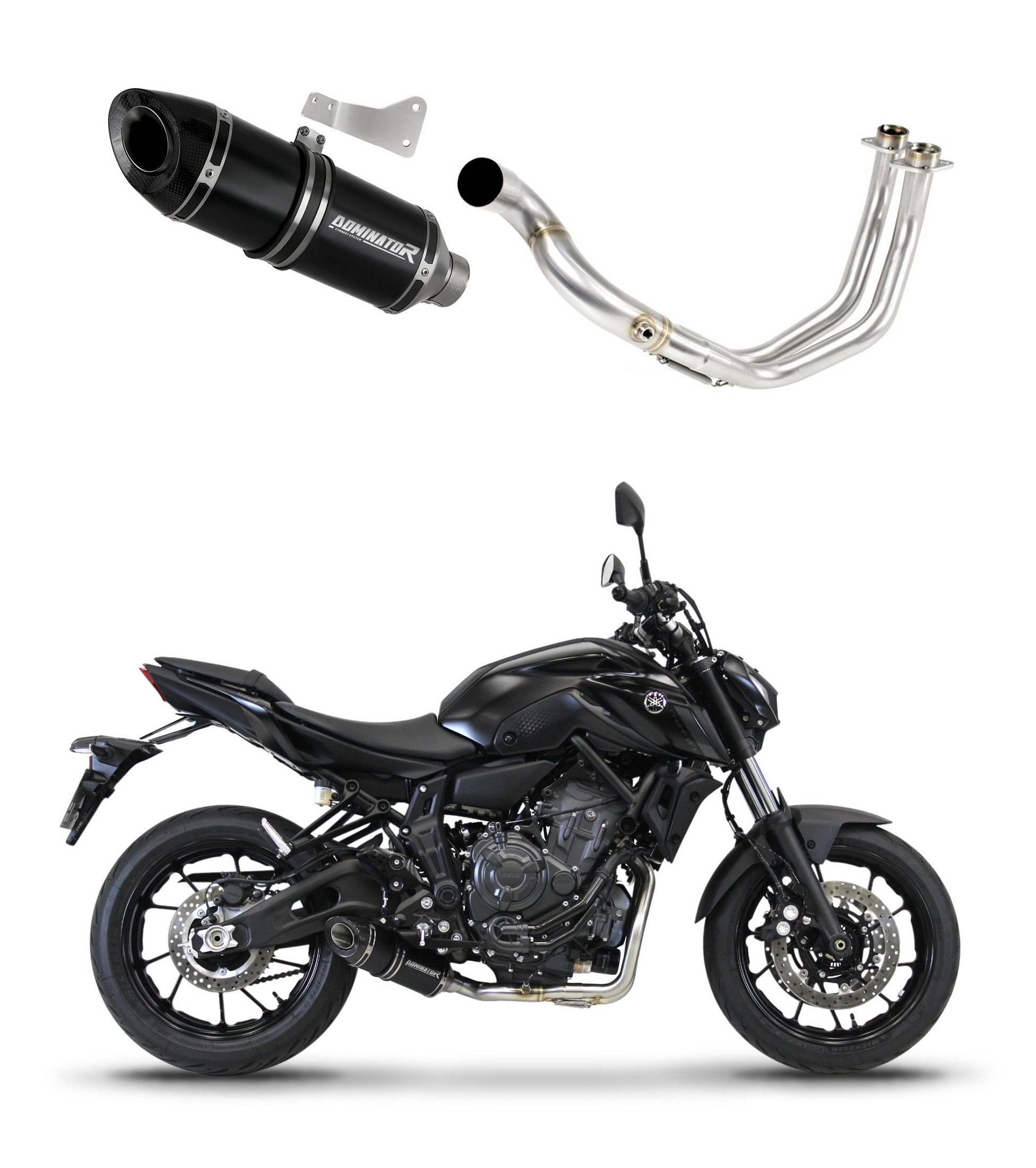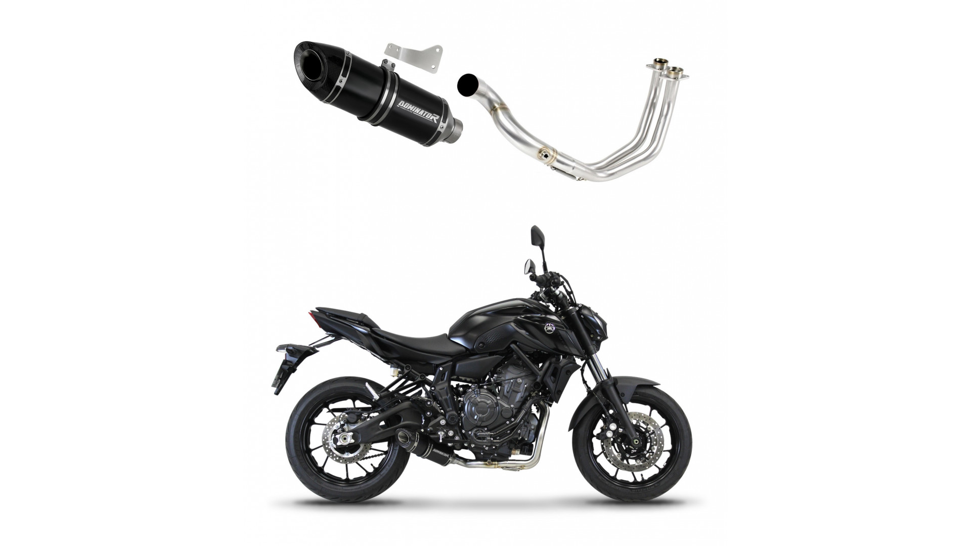 Exhaust System DOMINATOR with HP8 BLACK kipufogó kompatibilitás: YAMAHA MT-07 2021 YAMAHA MT-07 2022YAMAHA MT-07 2023 YAMAHA FZ-07 2021 YAMAHA FZ-07 2022 YAMAHA FZ-07 2023