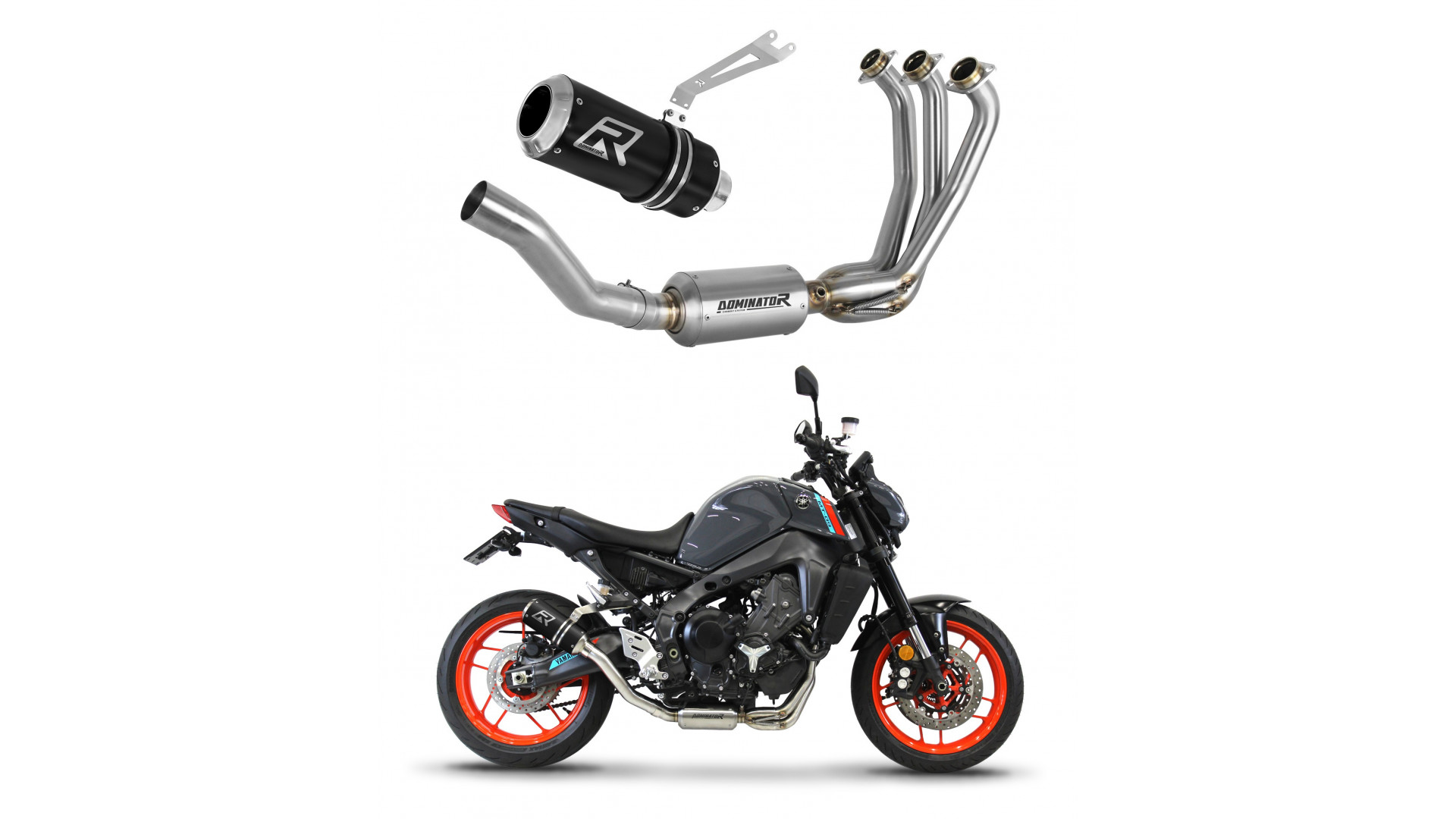 Exhaust System DOMINATOR with GP BLACK kipufogó kompatibilitás: YAMAHA MT-09 2021 YAMAHA MT-09 2022 YAMAHA MT-09 2023 YAMAHA FZ-09 2021 YAMAHA FZ-09 2022 YAMAHA FZ-09 2023
