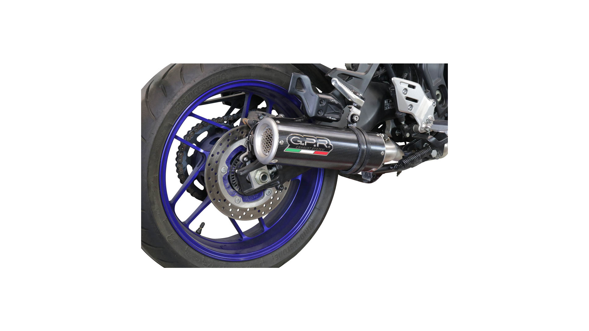 GPR kipufogó kompatibilis a Yamaha Tracer 9 2021-2024-hez, M3 Poppy, homologált teljes rendszerű kipufogó, eltávolítható zajcsökkentővel és katalizátorral.