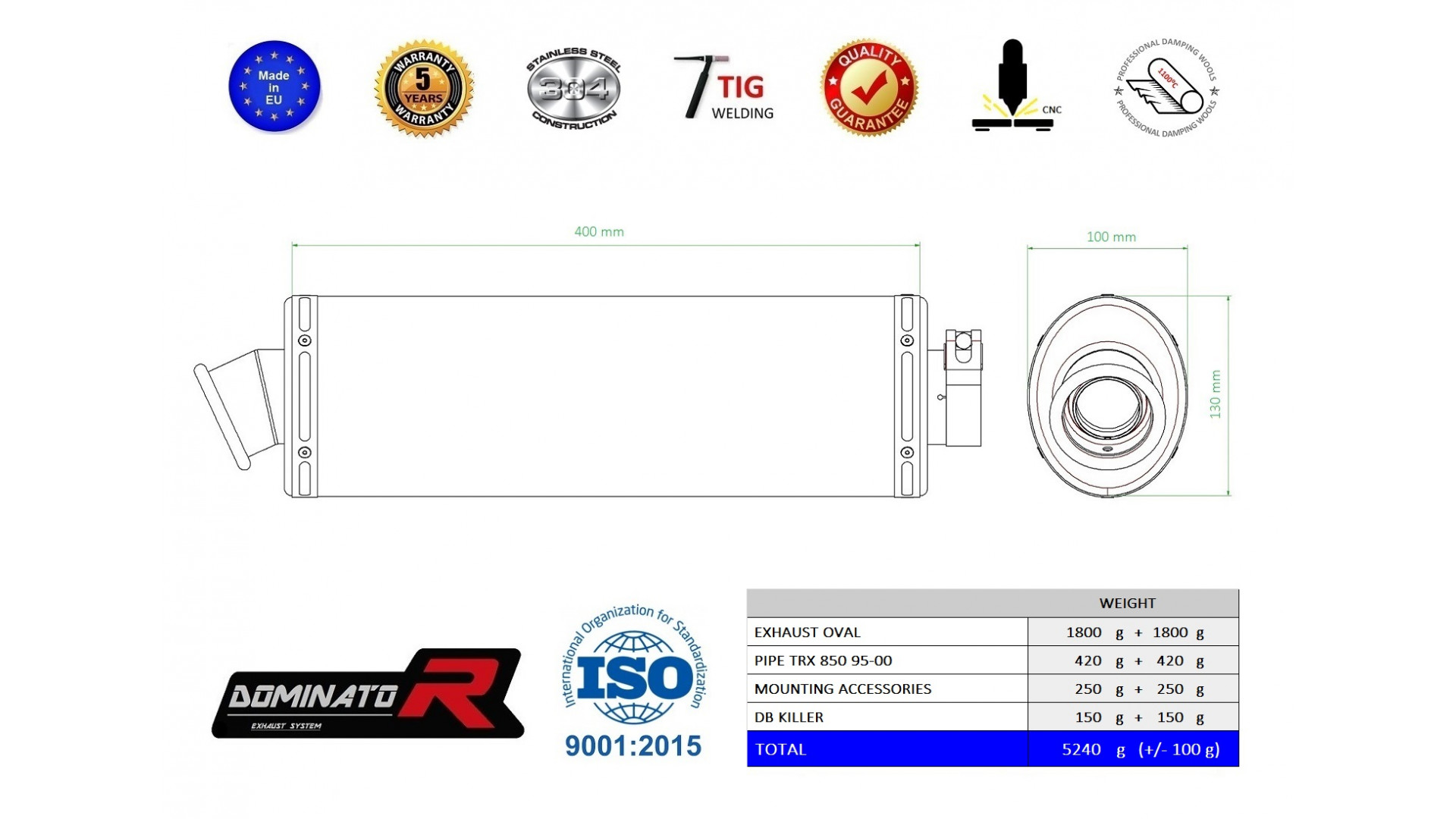 Dominator - TRX 850 kipufogó OVAL 1995 - 2000