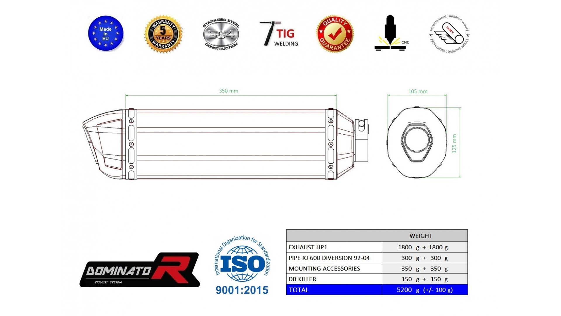 A Dominator kipufogó megváltoztatja motorkerékpár természetét, egyedi hangzást adva neki. A kipufogórendszer növeli a motor teljesítményét és nyomatékát, miközben könnyebb súllyal rendelkezik. A Dominator kipufogó garantálja az alacsony mélyhangzást. Amennyiben túl hangos a kipufogó, csökkentheti a