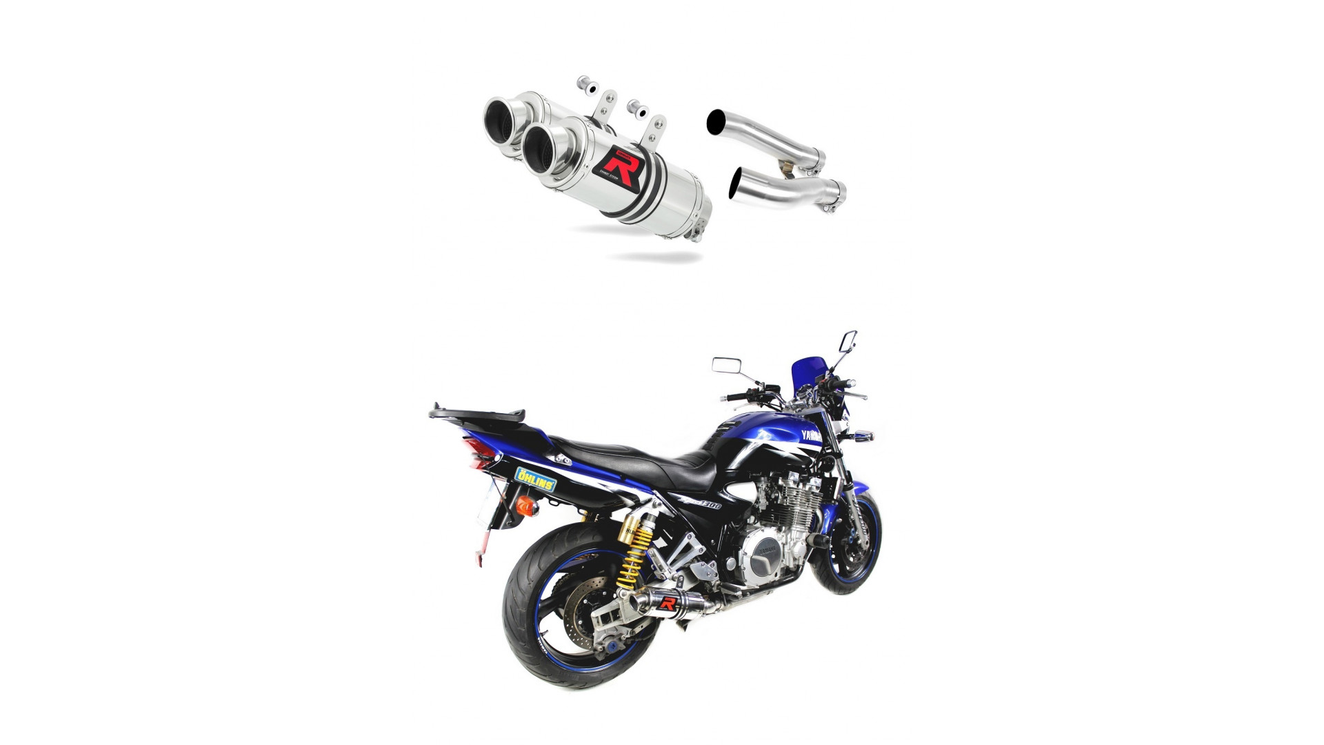 Csomag tartalma: Két Slip-on kipufogó, két összekötő cső, rögzítő alkatrészek.
