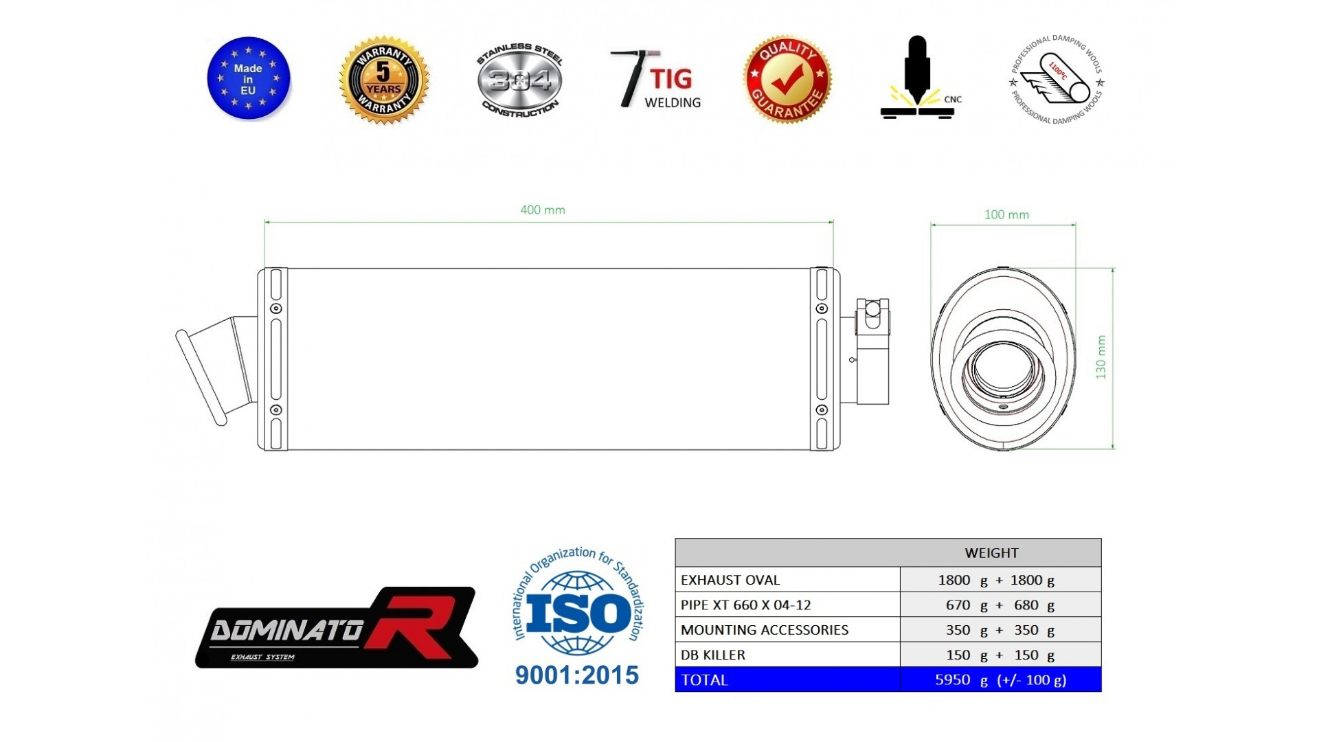 Dominator - XT 660 X kipufogó OVAL 2004 - 2015 Kattints a képre a nagyításhoz!