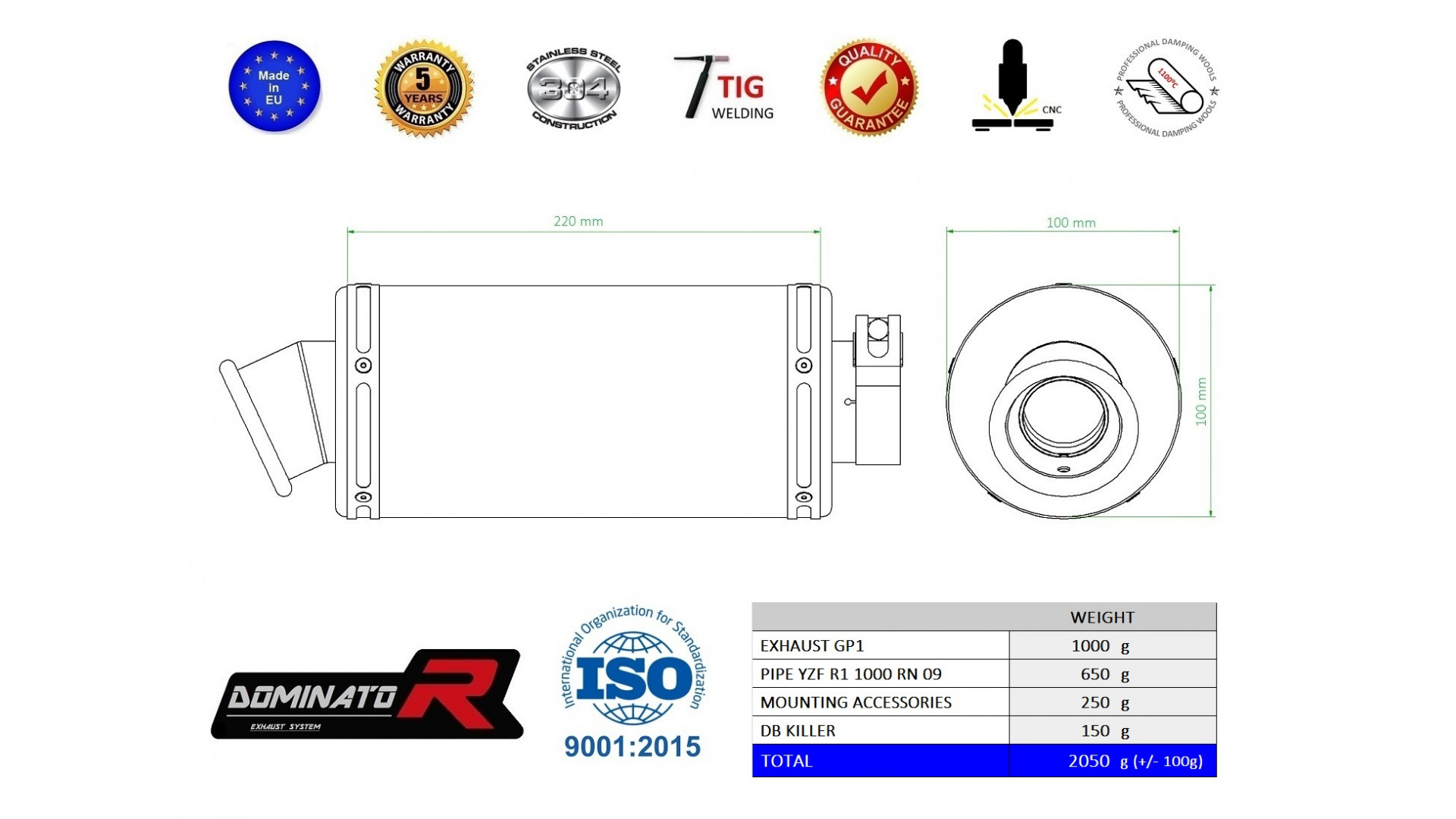 DOMINATOR kipufogó GP 1 kompatibilitás: YAMAHA YZF R1 1000 RN09 2002 YAMAHA YZF R1 1000 RN09 2003