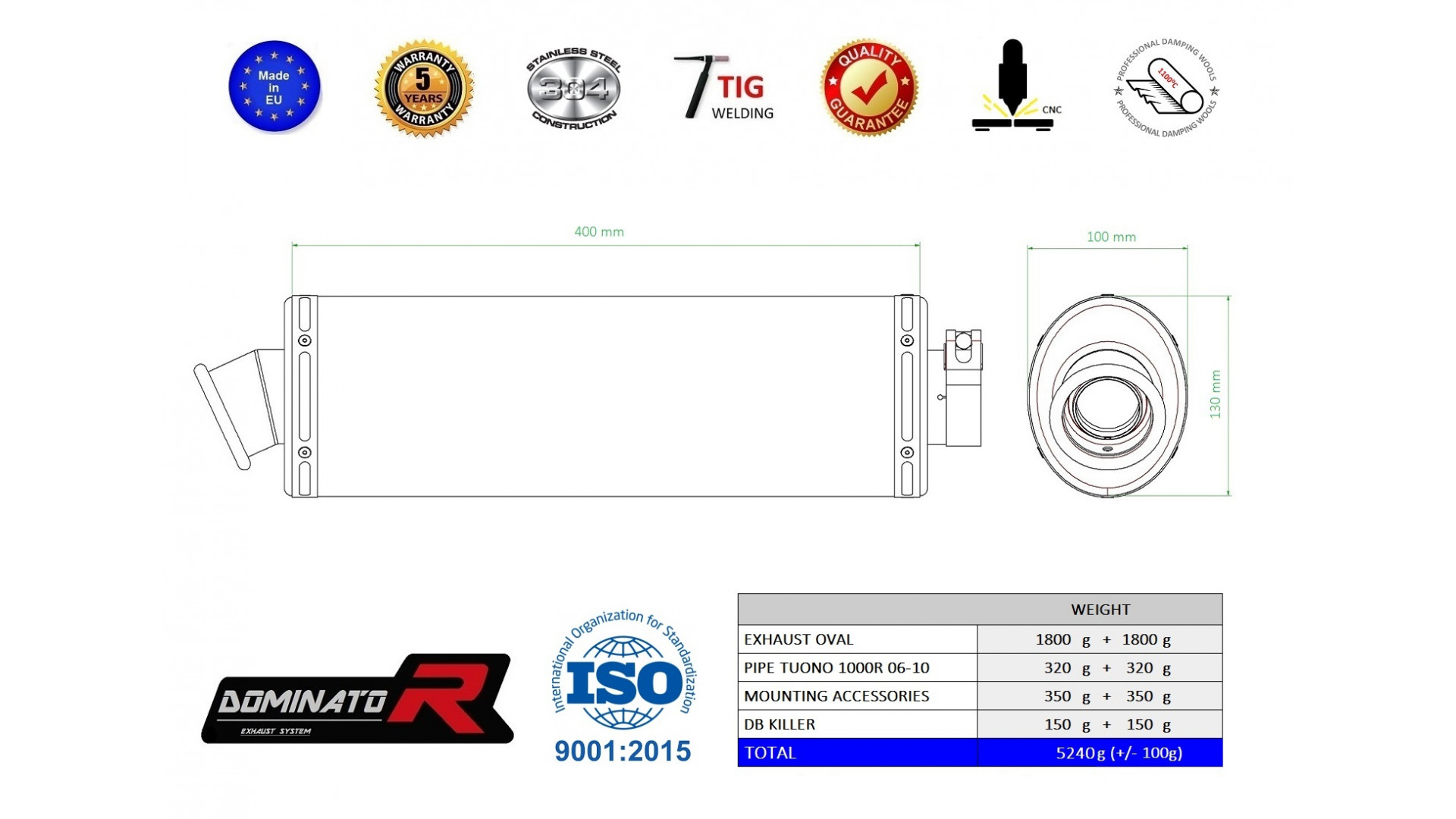 DOMINATOR kipufogó OVAL kompatibilitás: APRILIA TUONO 1000R 2006 APRILIA TUONO 1000R 2007 APRILIA TUONO 1000R 2008 APRILIA TUONO 1000R 2009 APRILIA TUONO 1000R 2010