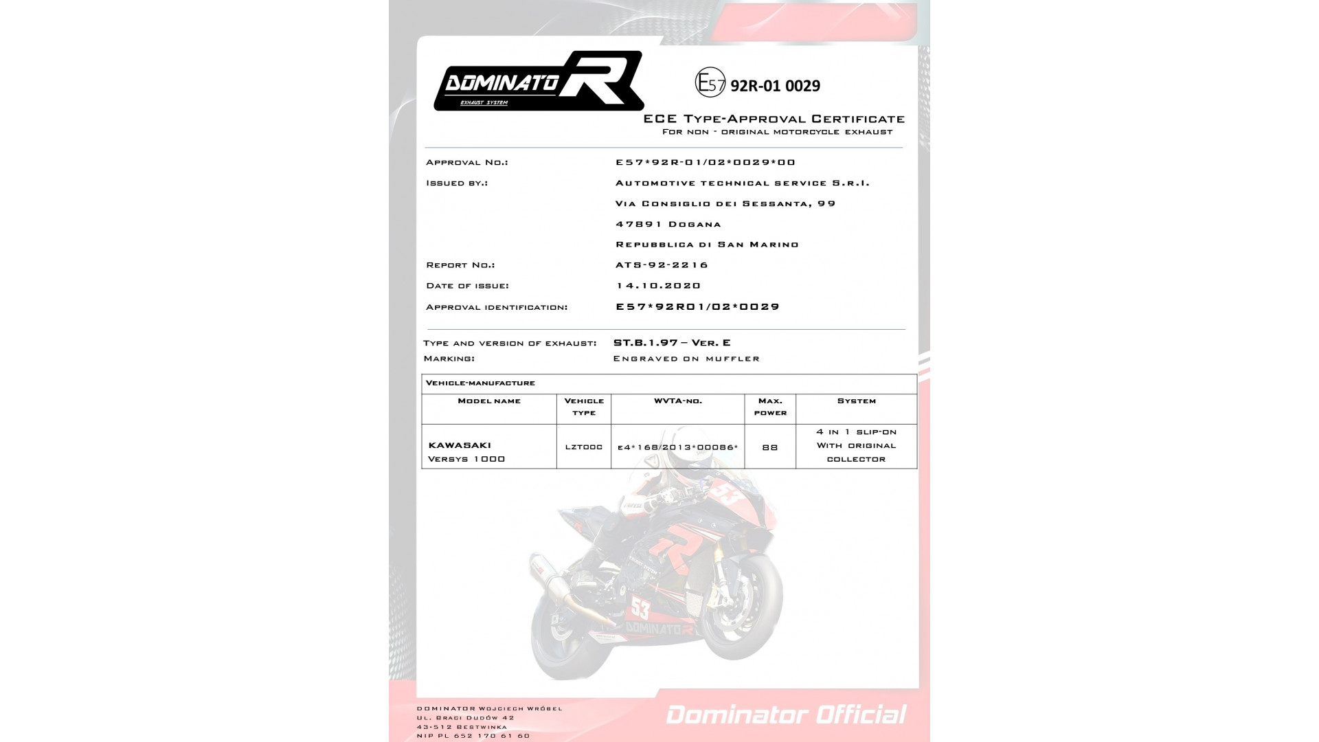 DOMINATOR kipufogó GP kompatibilitás: KAWASAKI VERSYS 1000 2019 KAWASAKI VERSYS 1000 2020 KAWASAKI VERSYS 1000 2021