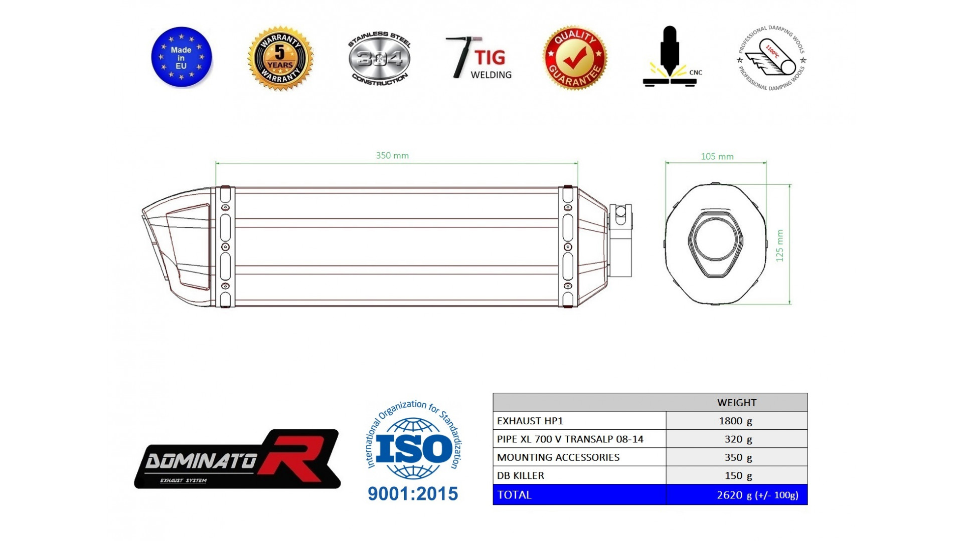 Dominator - XL 700 V TRANSALP kipufogó HP1 2008 - 2014
