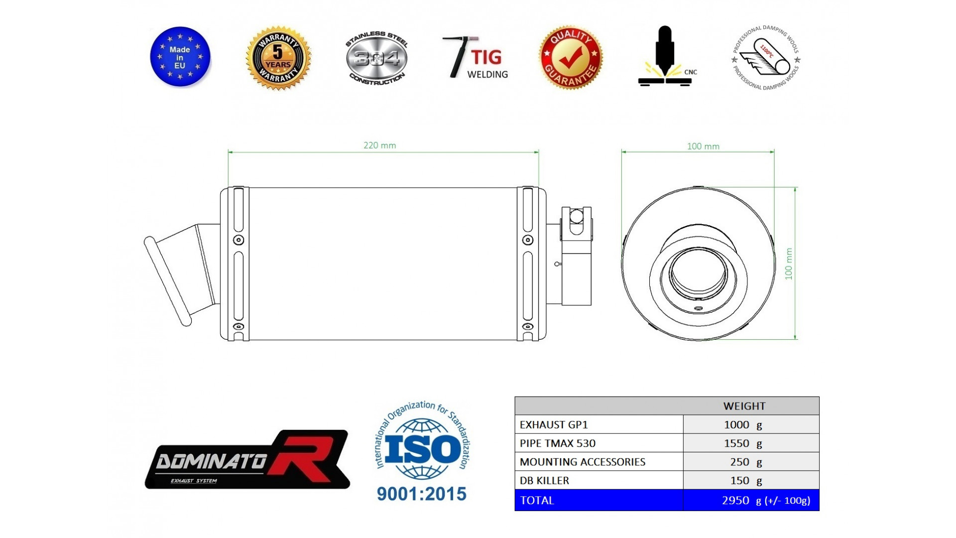 Exhaust System DOMINATOR with GP 1 kipufogó kompatibilitás:YAMAHA T-MAX 530 2012YAMAHA T-MAX 530 2013YAMAHA T-MAX 530 2014YAMAHA T-MAX 530 2015YAMAHA T-MAX 530 2016