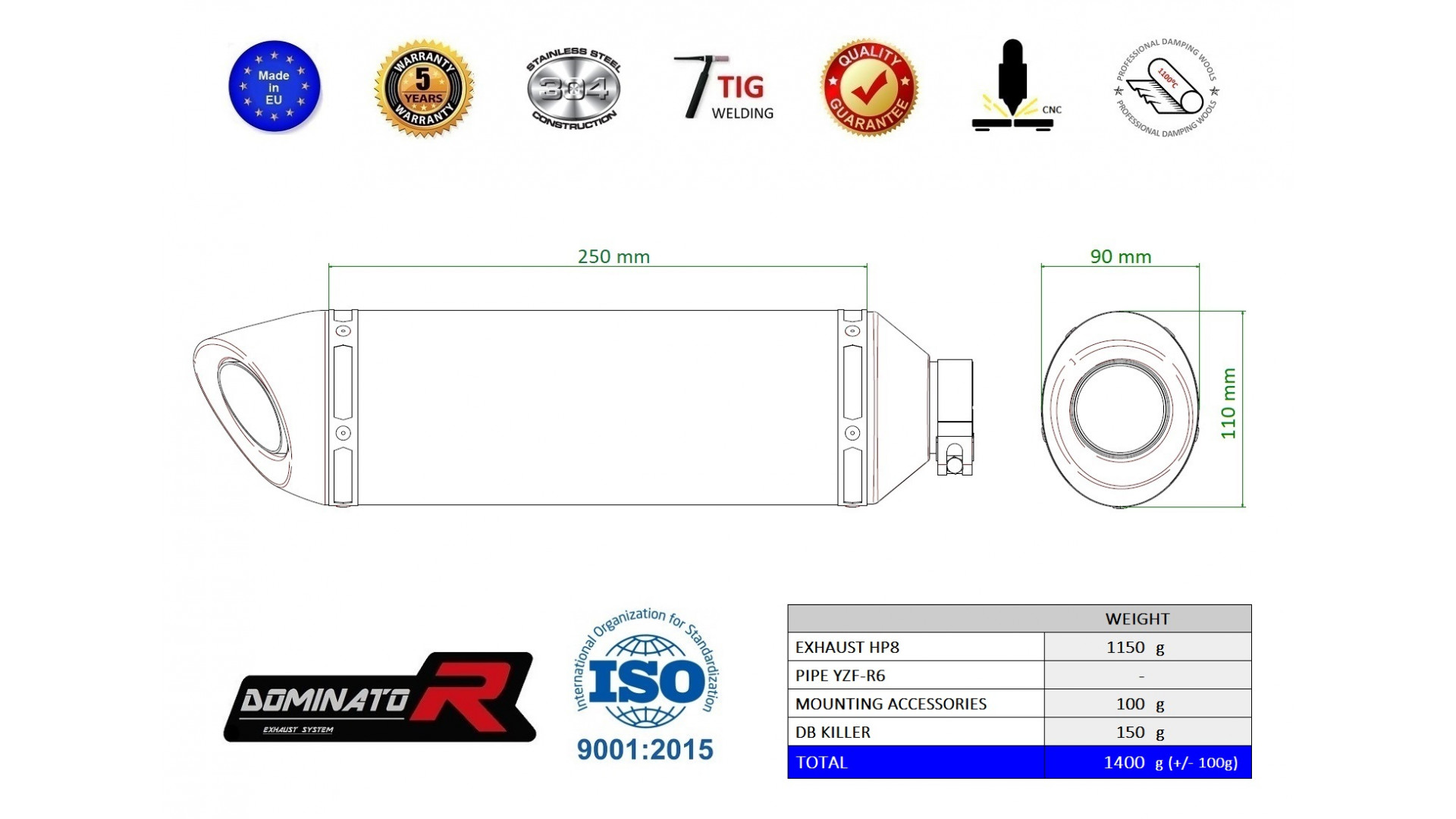 Dominator - Yamaha YZF R6 2017 - 2022 kipufogó HP8 Kattints a képre a nagyításhoz!