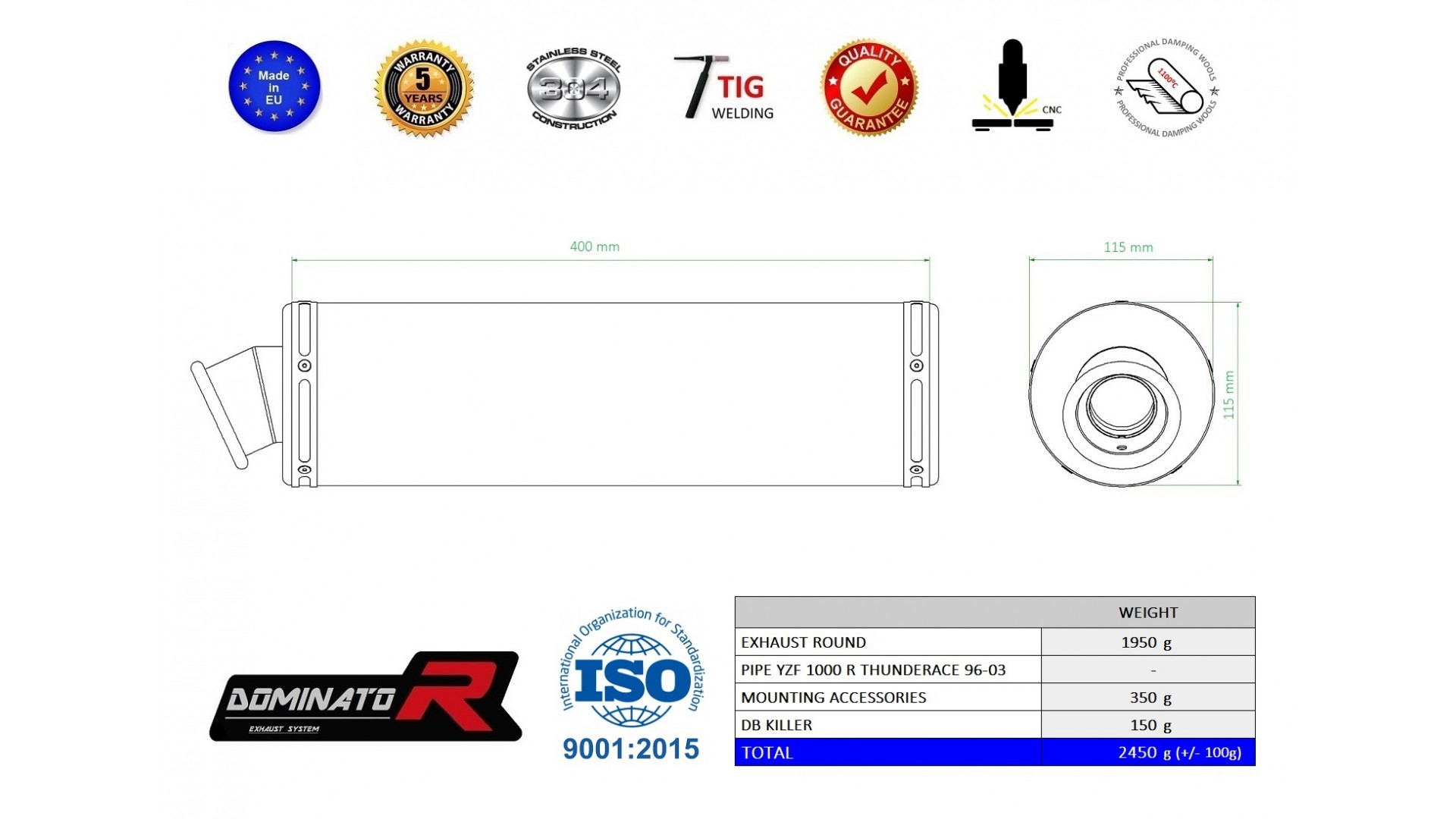 A Dominator kipufogó megváltoztatja motorkerékpár természetét, egyedi hangzást adva neki. A kipufogórendszer növeli a motor teljesítményét és nyomatékát, miközben könnyebb súllyal rendelkezik. A Dominator kipufogó garantálja az alacsony mélyhangzást. Amennyiben túl hangos a kipufogó, csökkentheti a